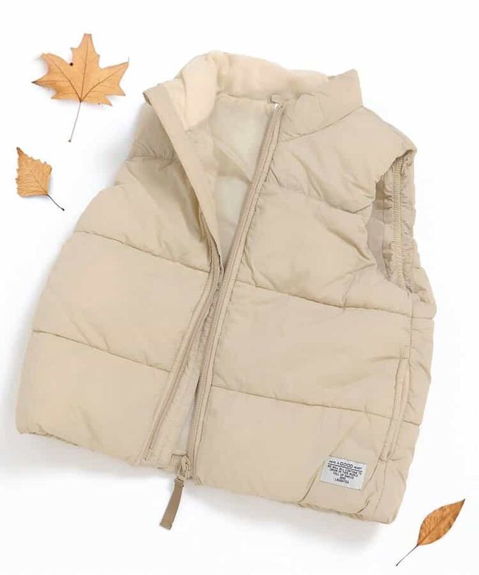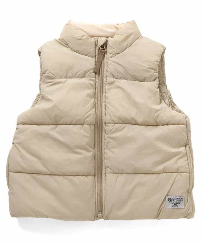 日本 BREEZE - 可機洗 輕量保暖鋪棉背心-米杏