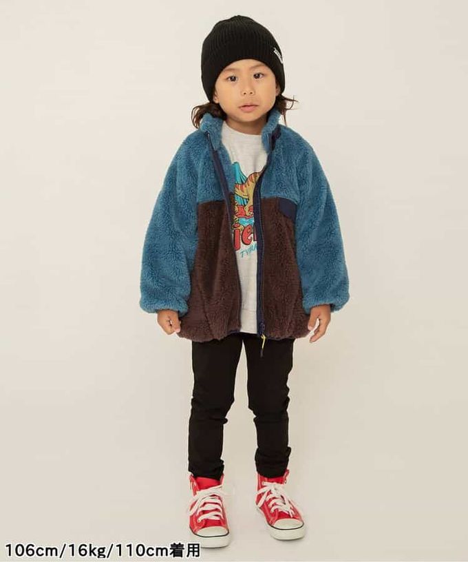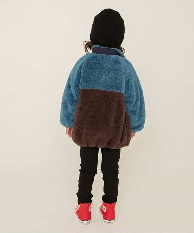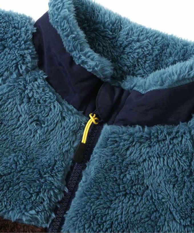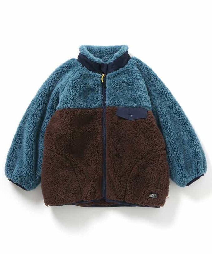日本 BREEZE - 休閒保暖絨毛外套/夾克-撞色-藍綠X咖啡