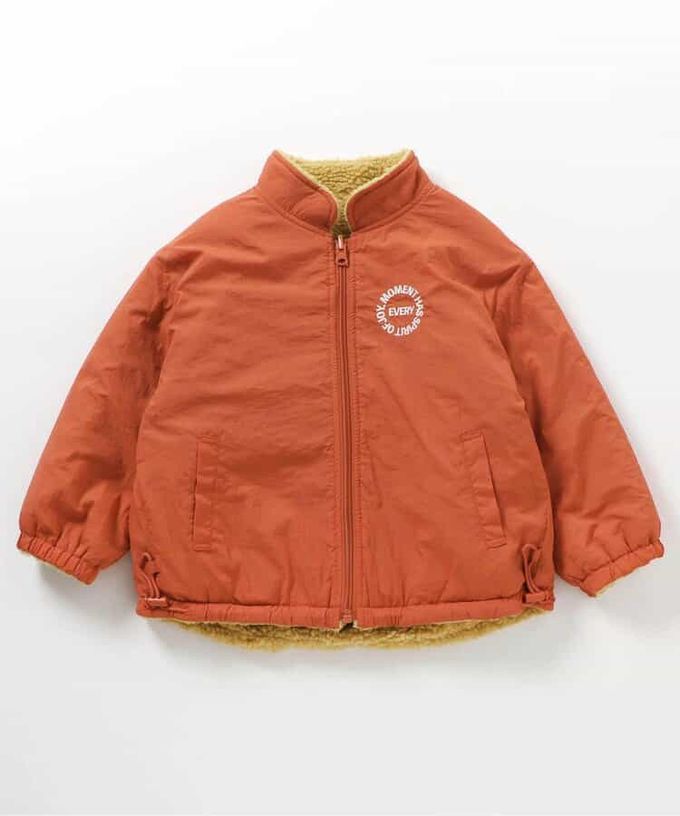 日本 BREEZE - 2WAY雙面穿!柔軟毛毛百搭保暖外套-橘紅X淺棕
