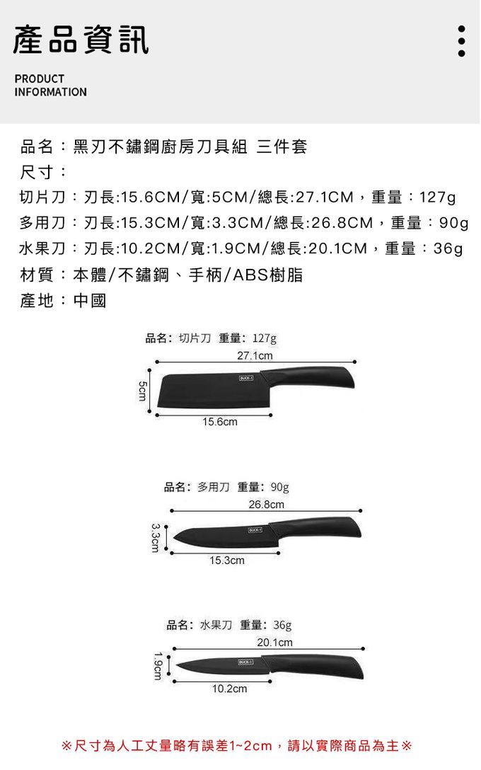 品名:黑刃不鏽鋼廚房刀具組 三件套