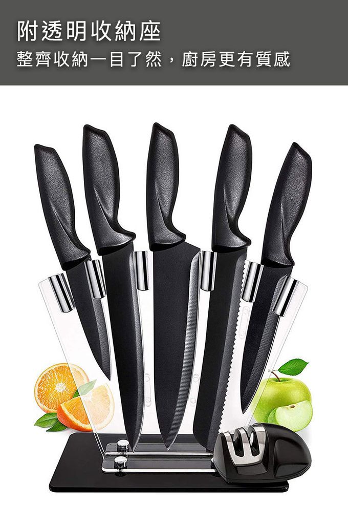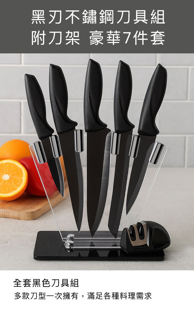 品名:黑刃不鏽鋼刀具組 附刀架 豪華7件套