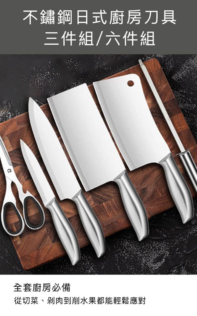 不鏽鋼日式刀具三件套 廚師刀 切片刀 砍骨刀