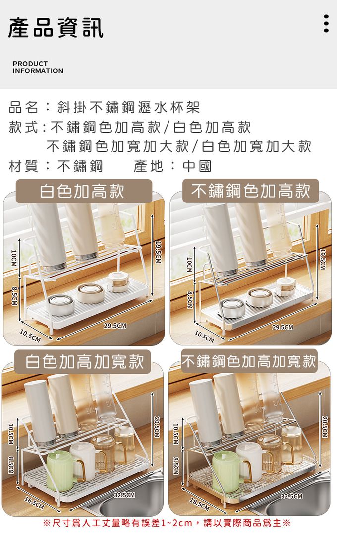 品名:三角形斜掛杯架 加寬加大款|不鏽鋼瀝水置物架 保溫杯/水壺適用
