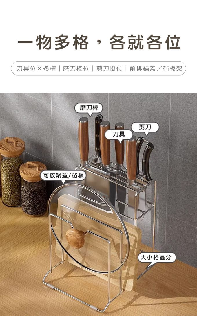 品名:不鏽鋼刀架砧板鍋蓋收納架|多功能廚房置物架