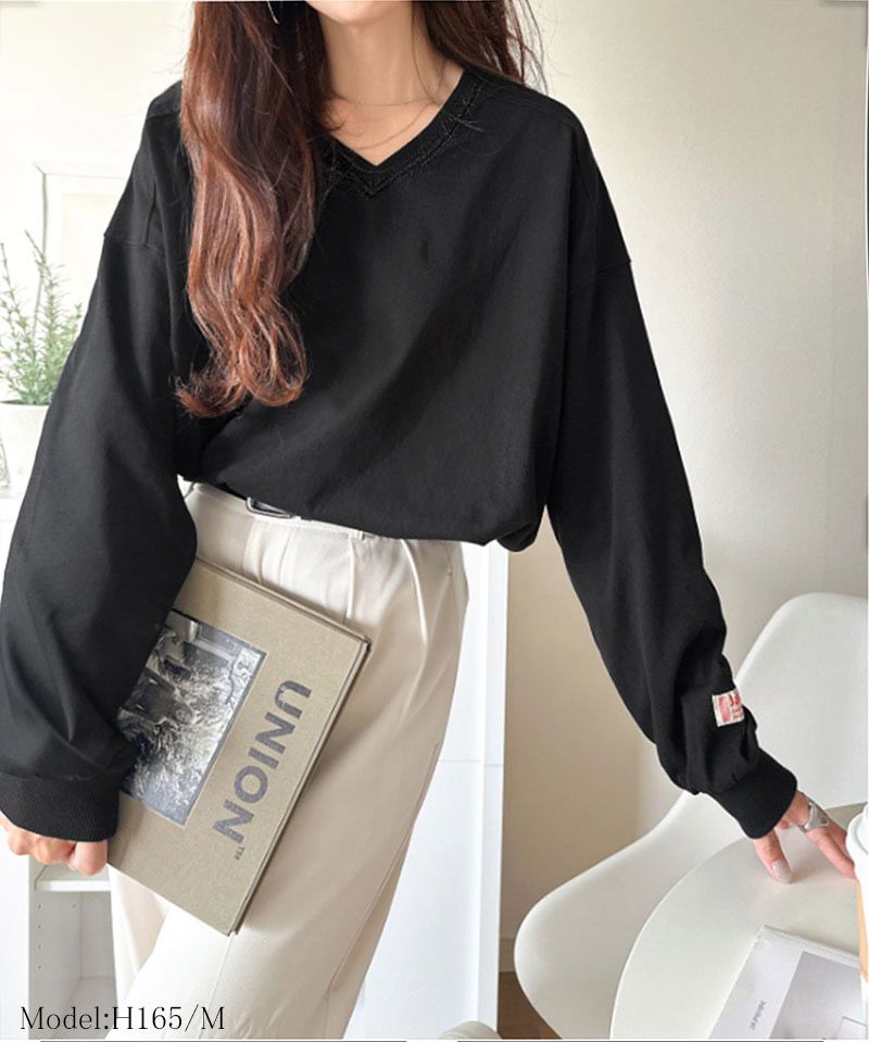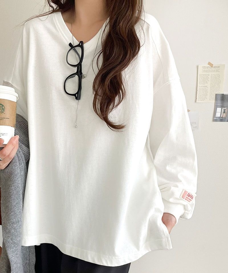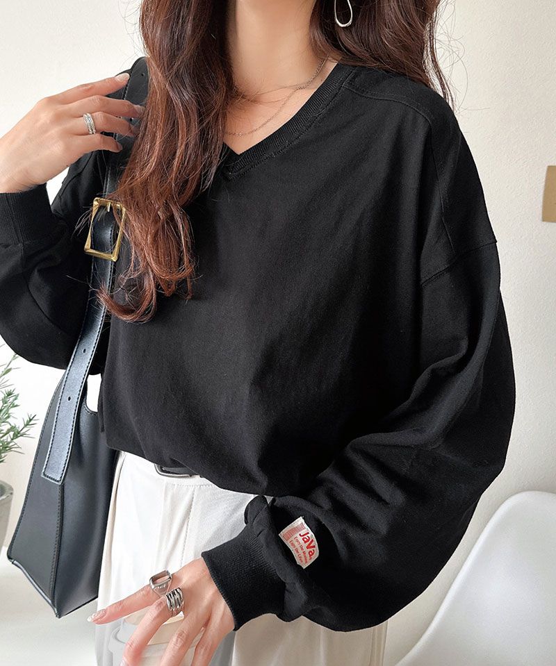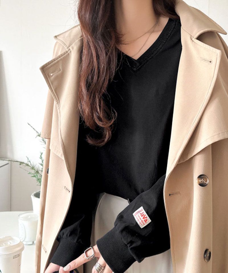 • 品名:Java 簡約顯瘦V領長袖上衣