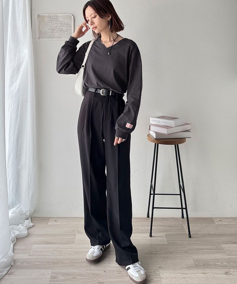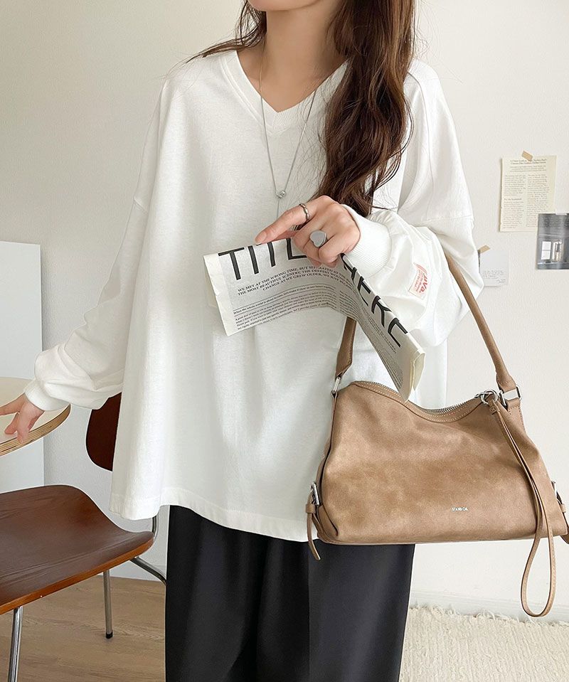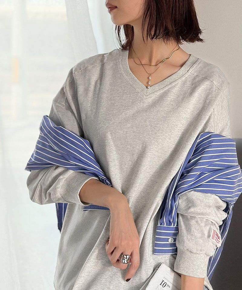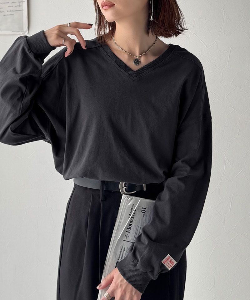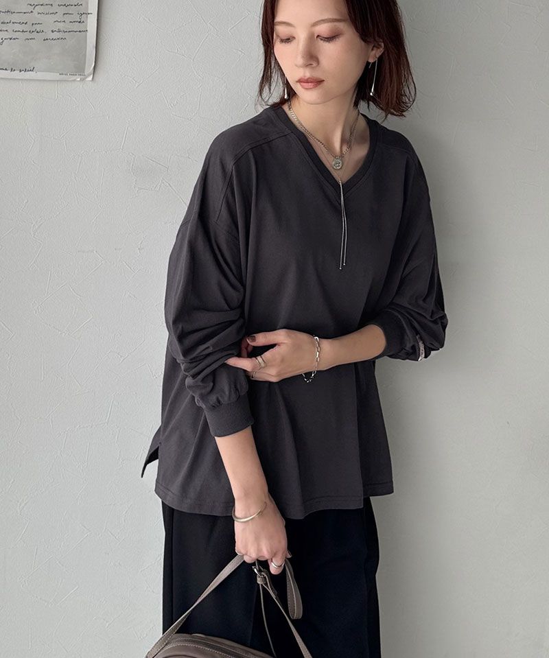 日本 Classical Elf - Java 簡約顯瘦V領長袖上衣-炭灰
