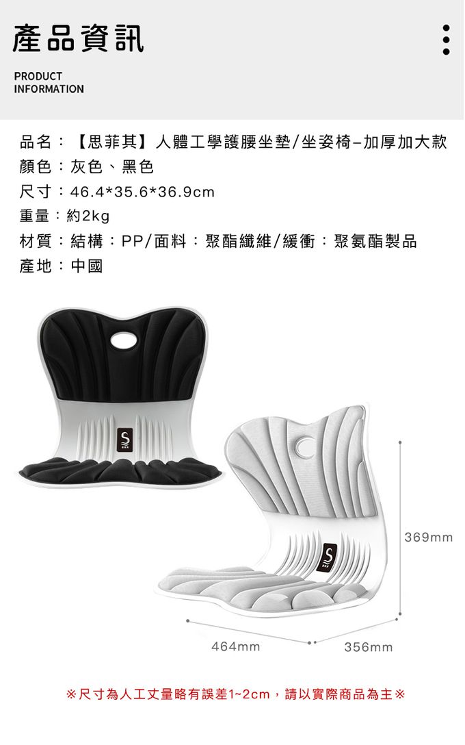 品名:人體工學護腰坐墊/坐姿椅-加厚加大款