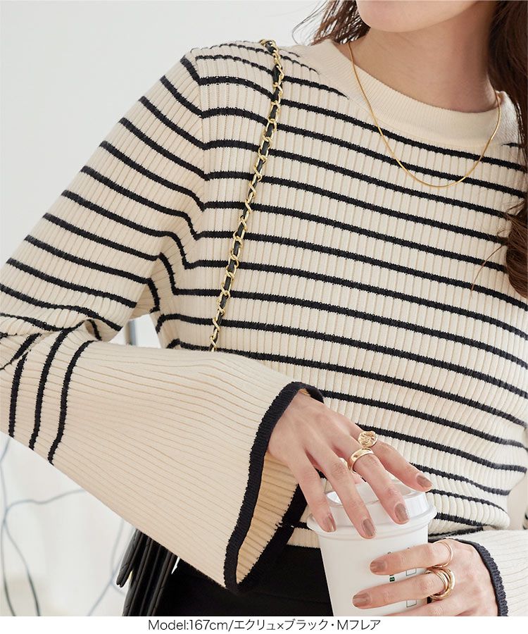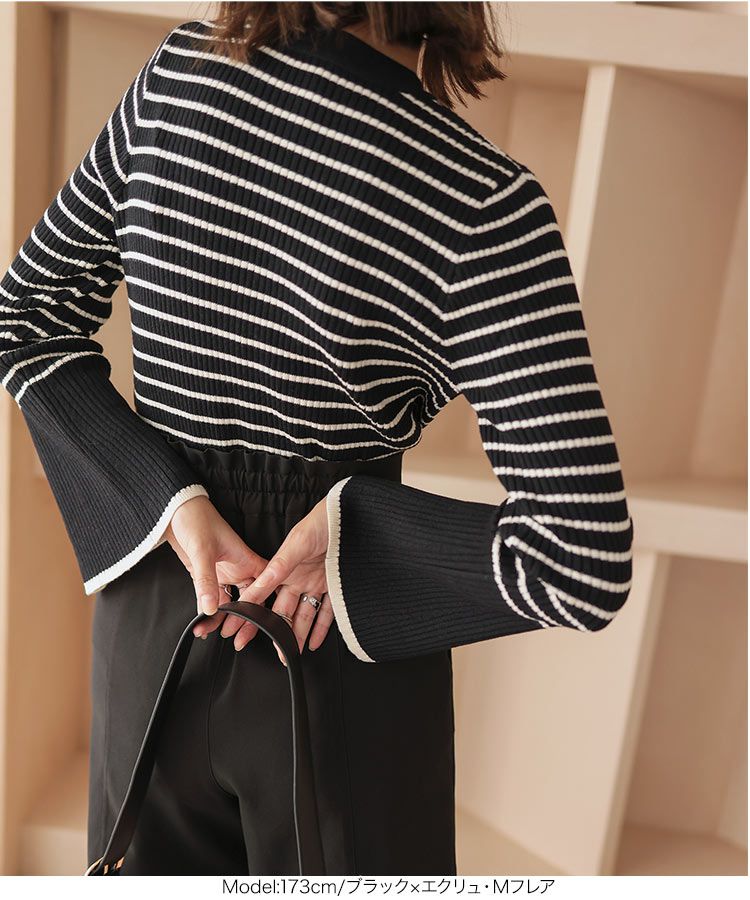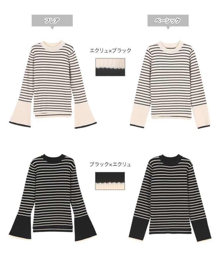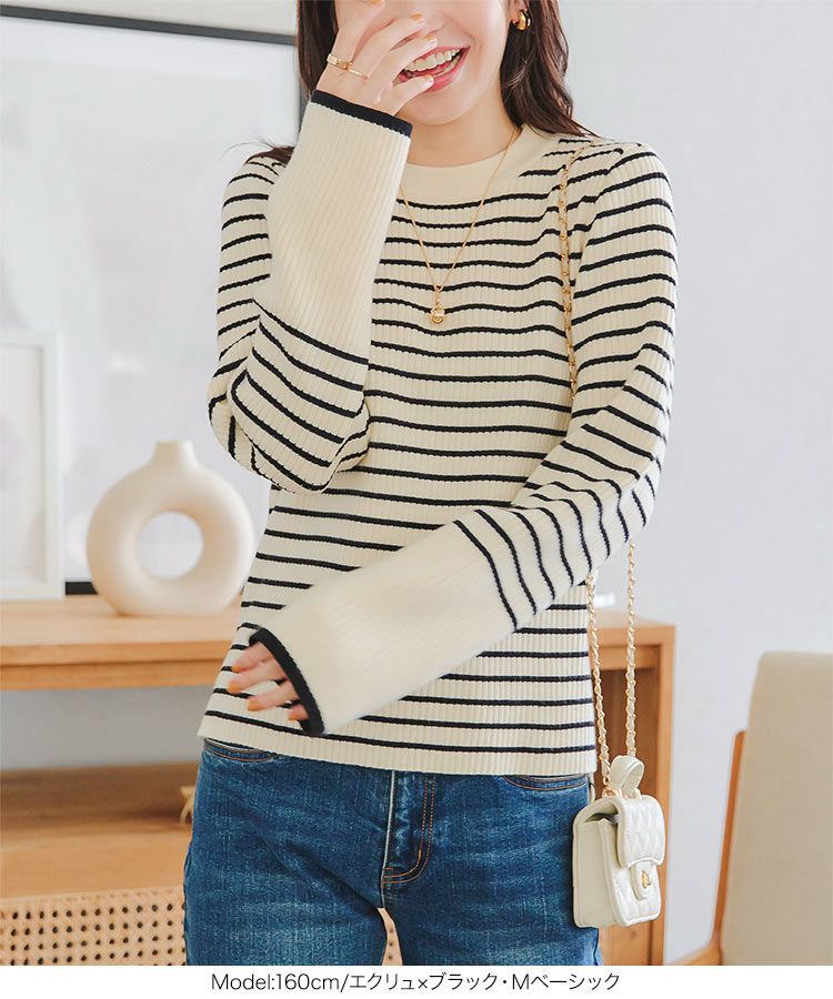 日本 Kobe Lettuce - 美型羅紋袖撞色針織上衣-(可選袖型)-白底條紋