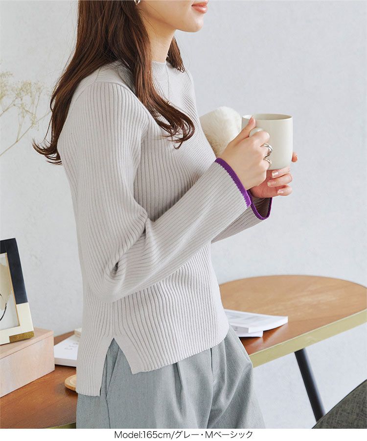• 品名:美型羅紋袖撞色針織上衣