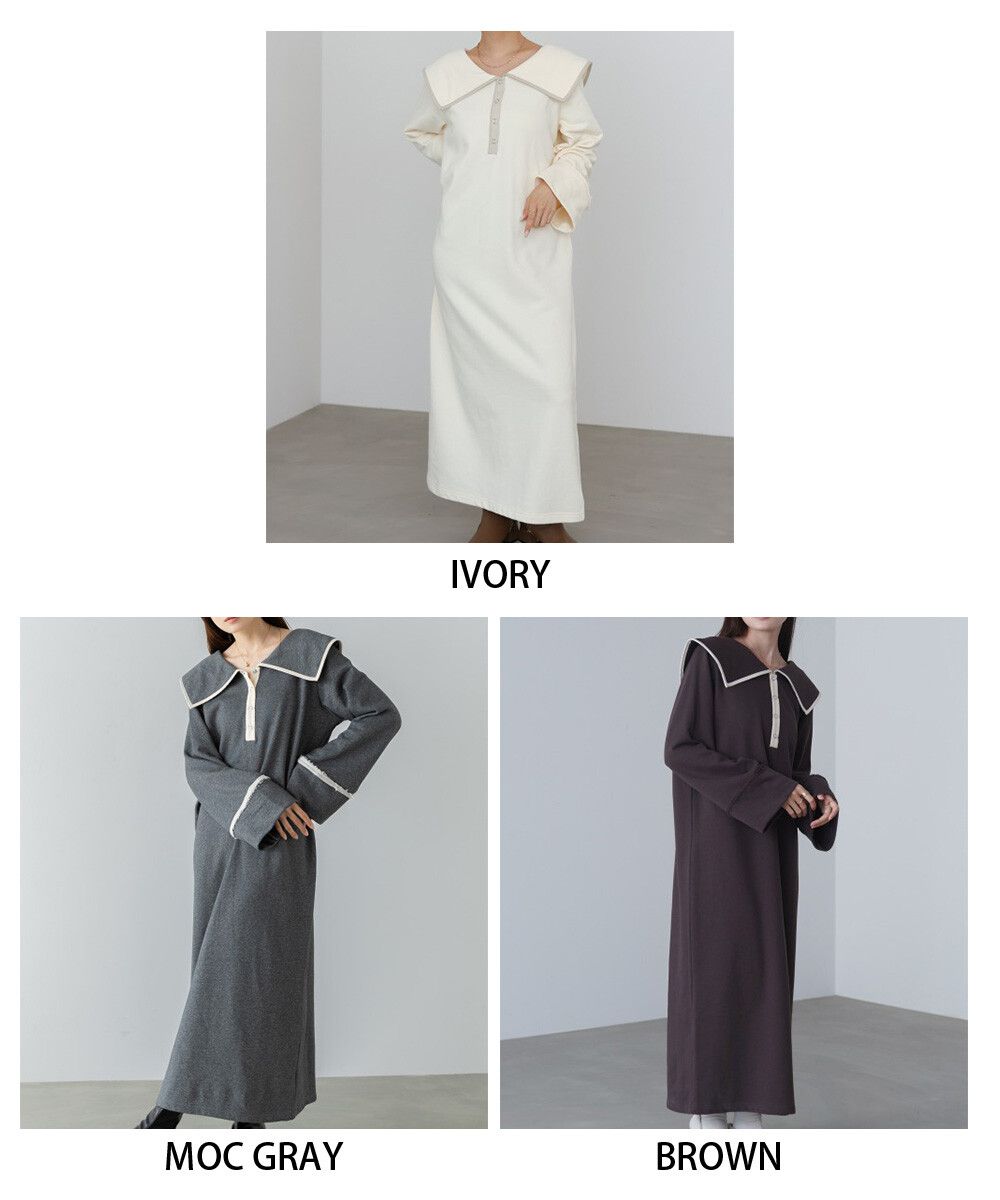 • 品名:滾邊個性大翻領休閒長袖洋裝