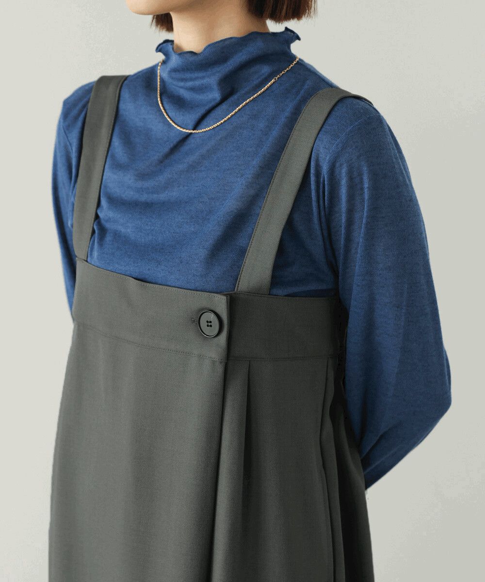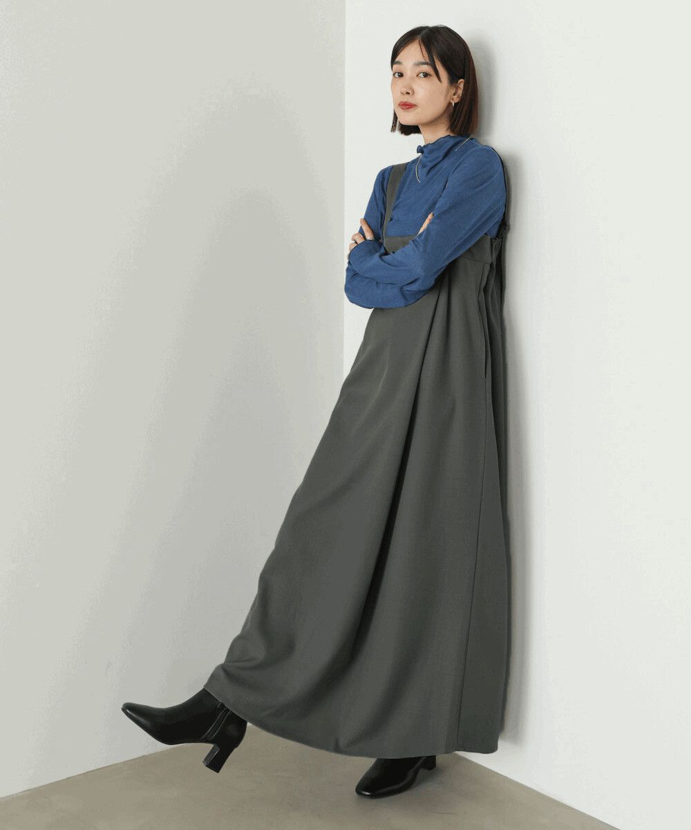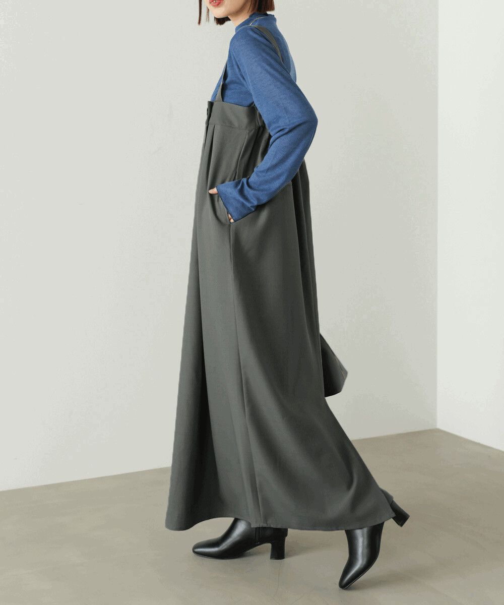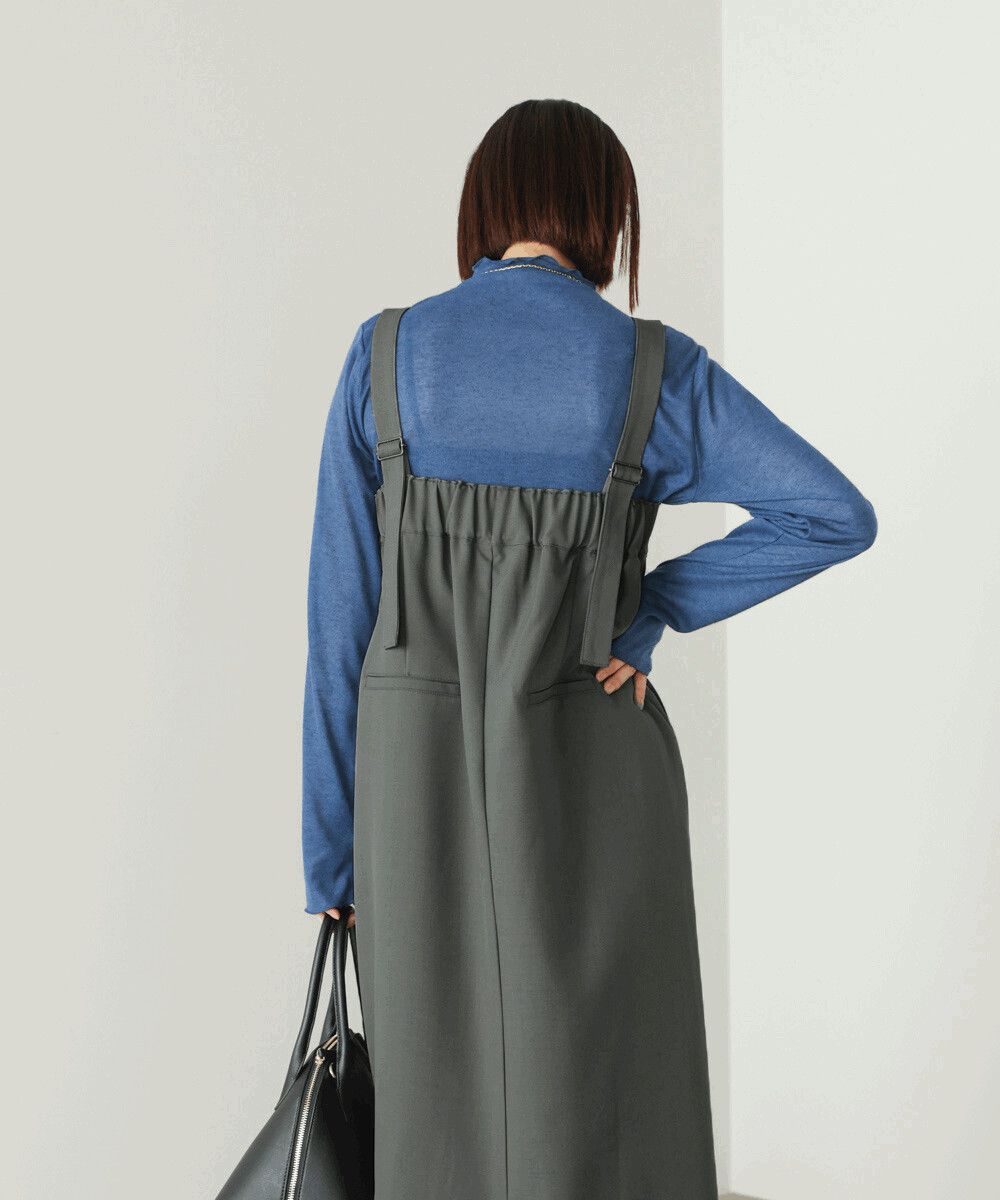 • 品名:斜紋布優雅摺線工裝風吊帶裙