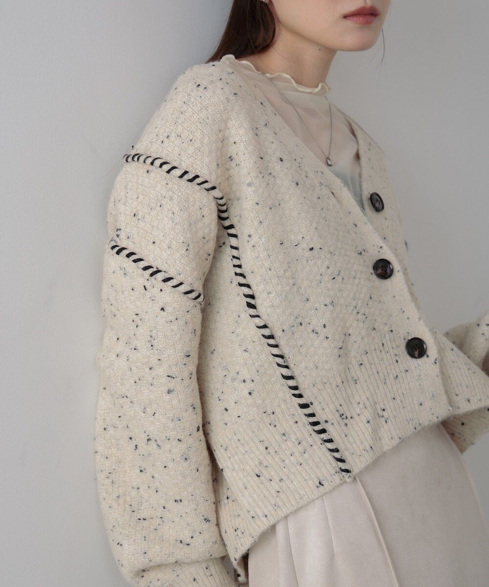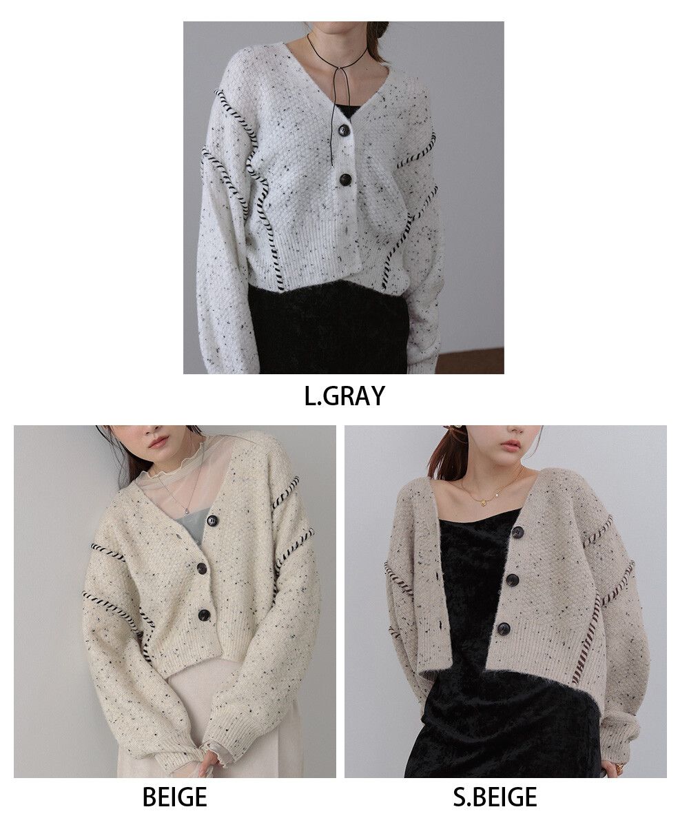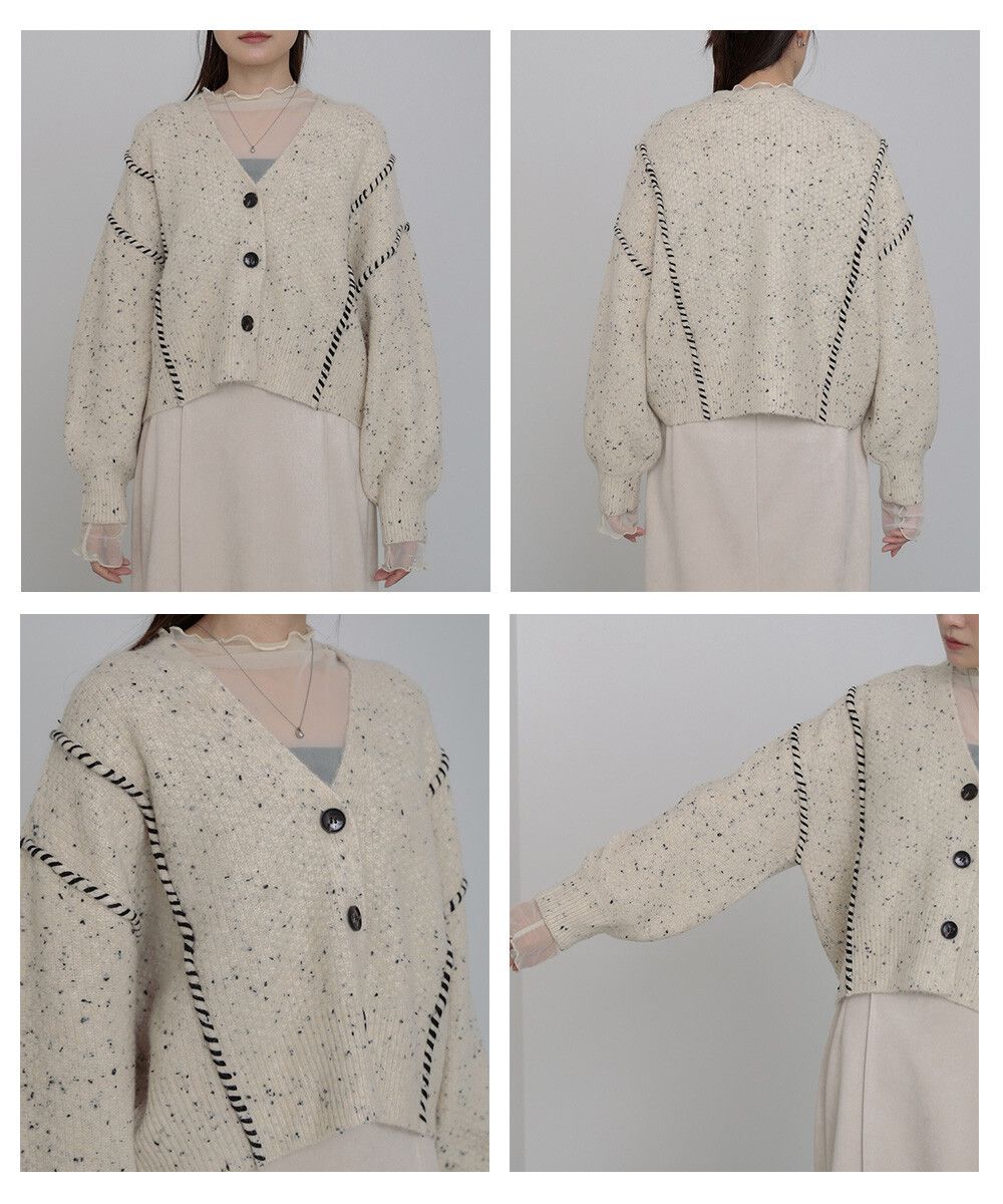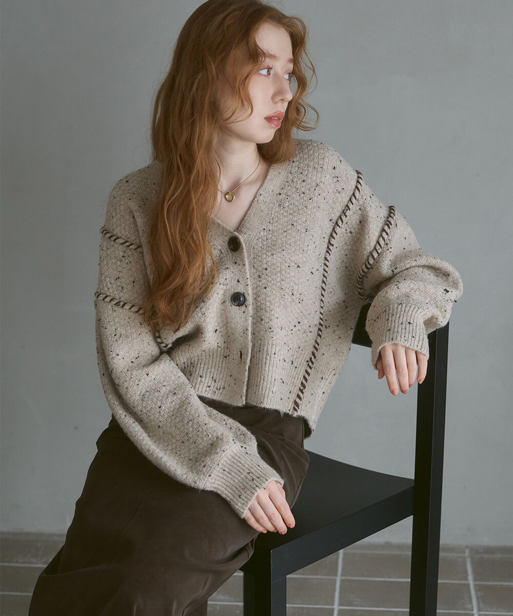 日本 Bab - 縫線感溫暖紋理短版針織外套-淺米