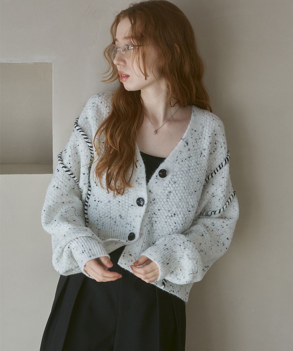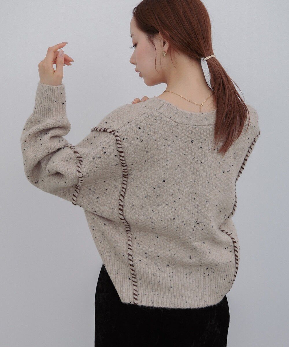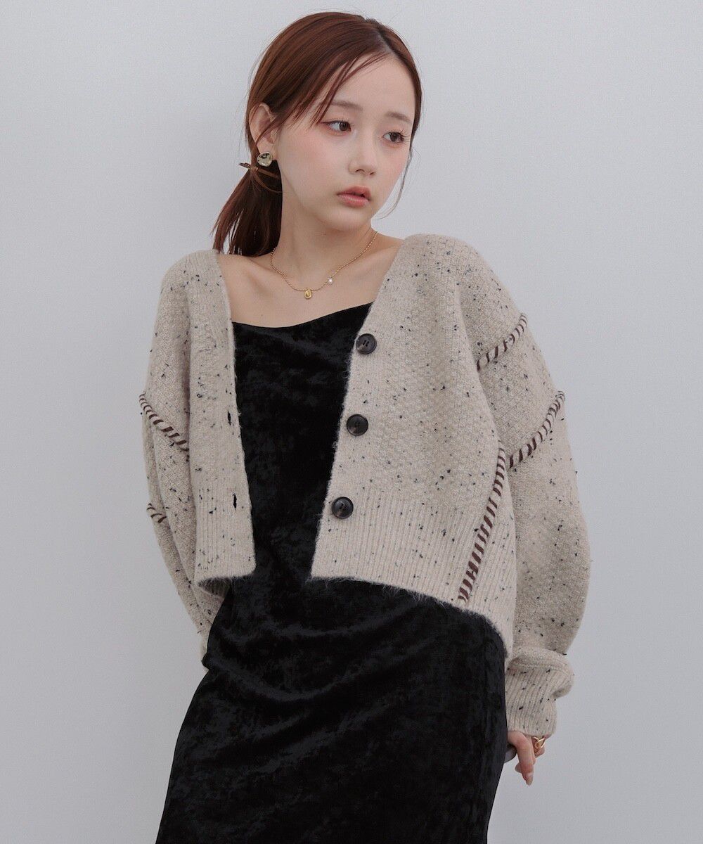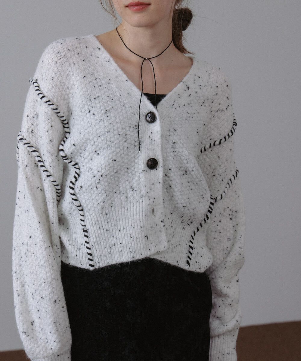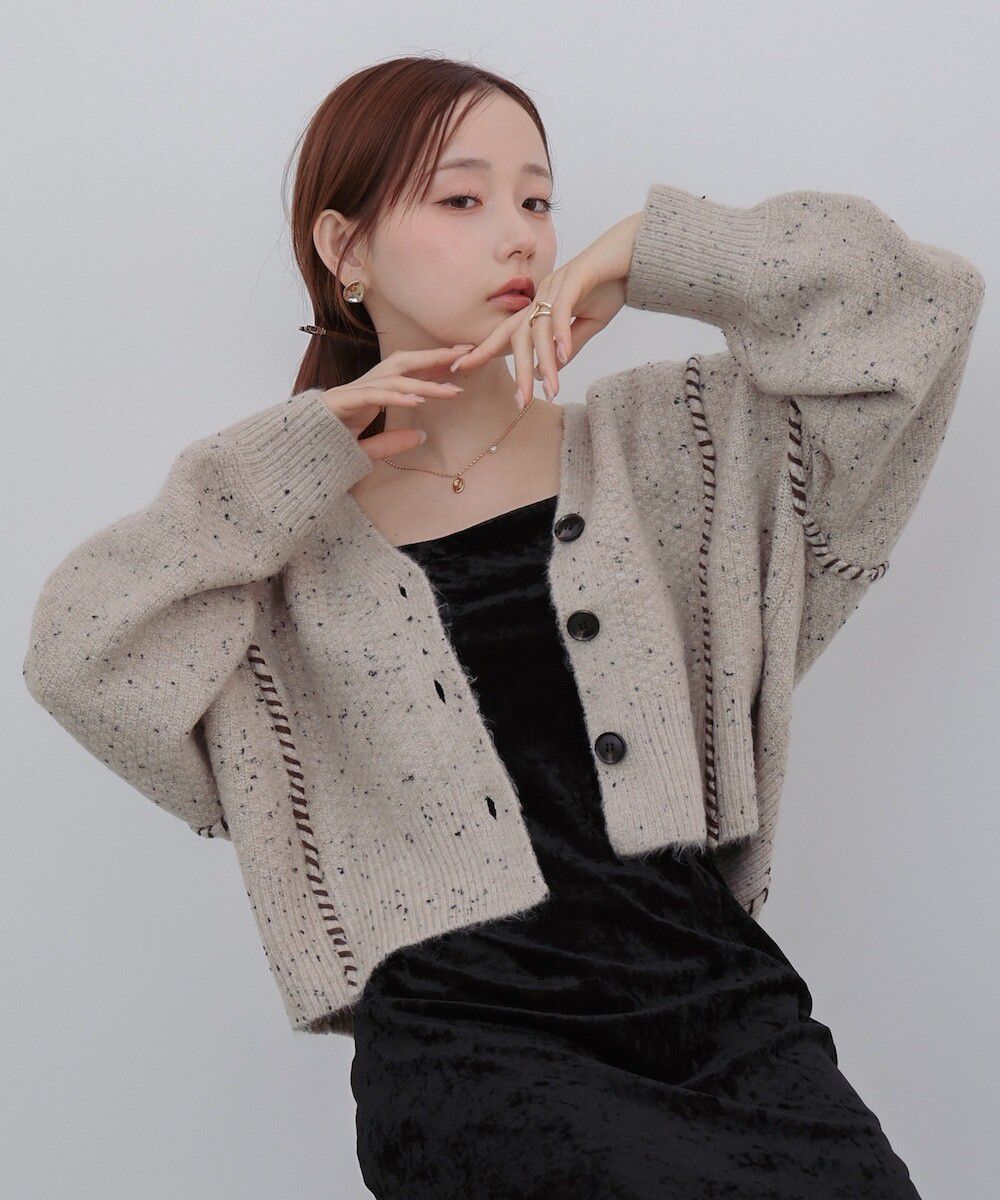 日本 Bab - 縫線感溫暖紋理短版針織外套-淺米