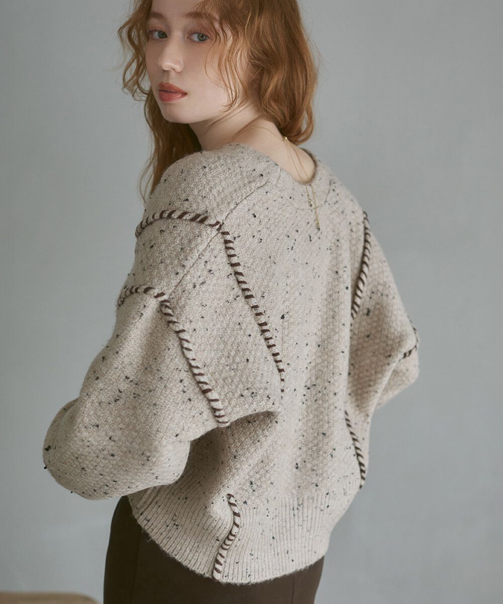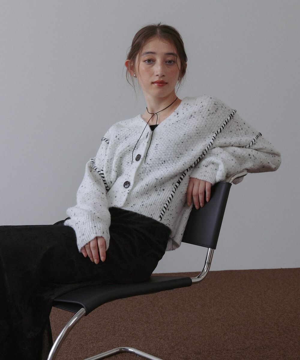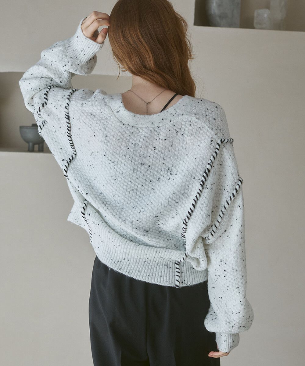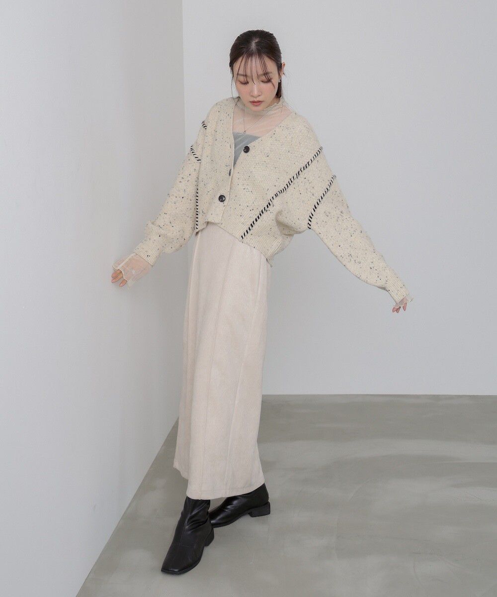 日本 Bab - 縫線感溫暖紋理短版針織外套-淺米