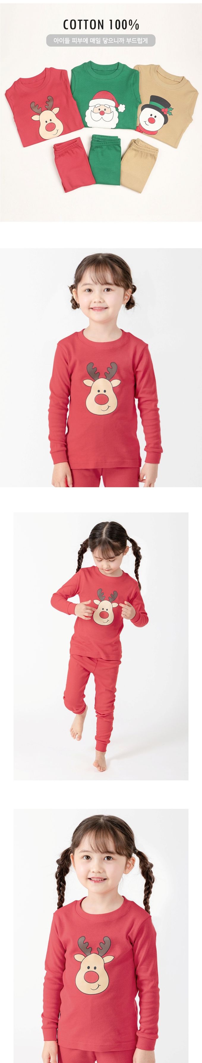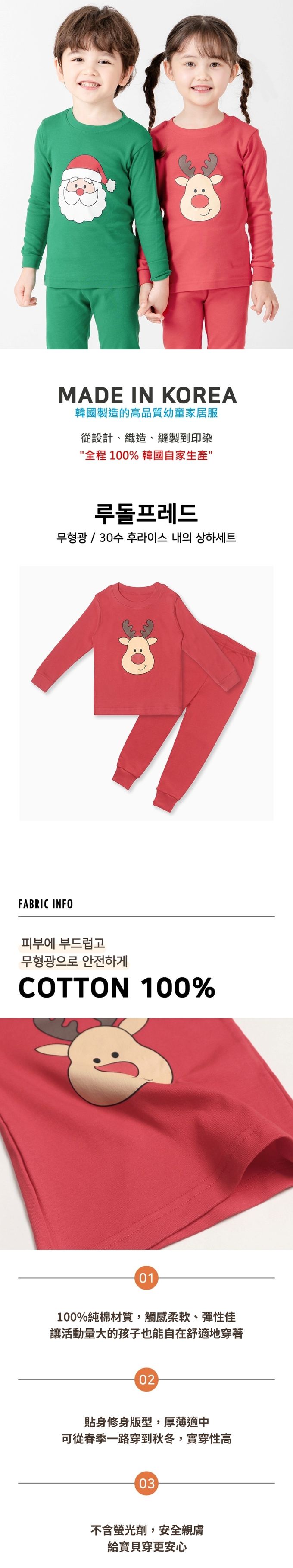 韓國 Mellisse - 韓製30支純棉柔軟長袖家居服-可愛魯道夫-紅