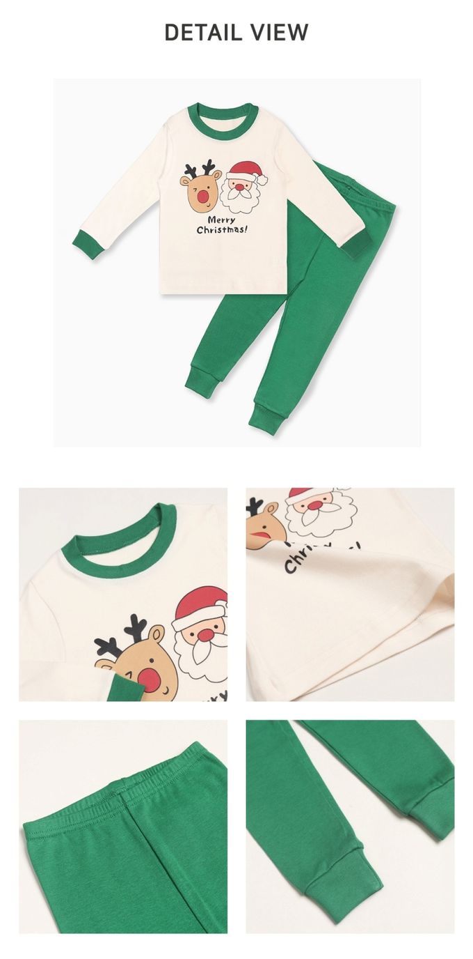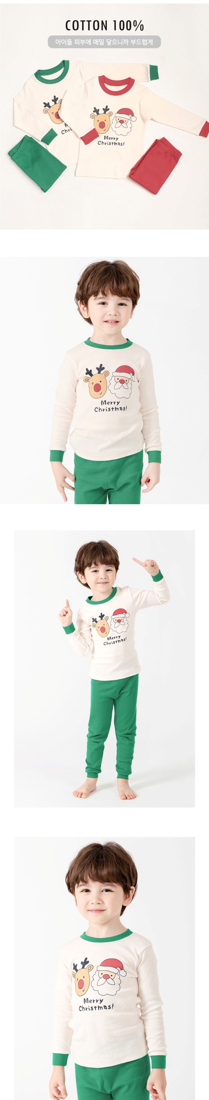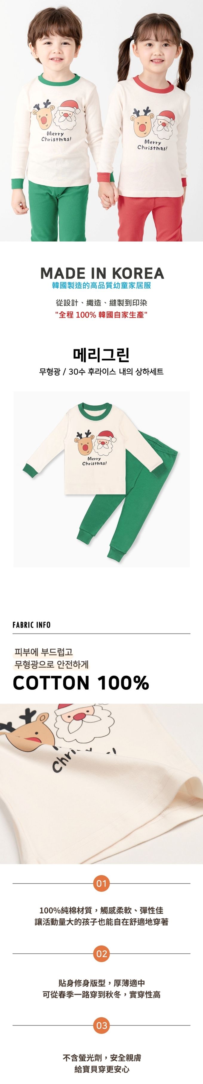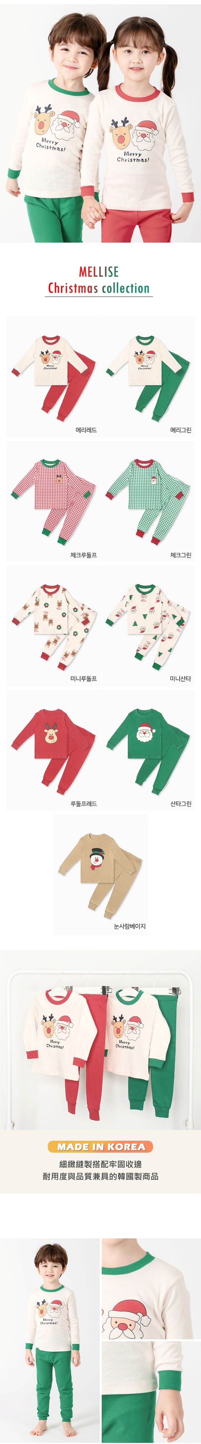 韓國 Mellisse - 韓製30支純棉柔軟長袖家居服-馴鹿X聖誕老人-米X綠