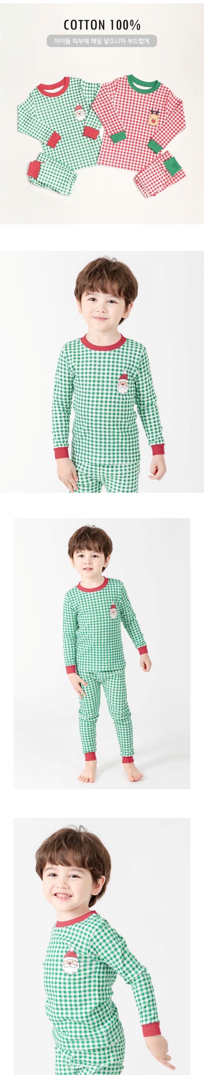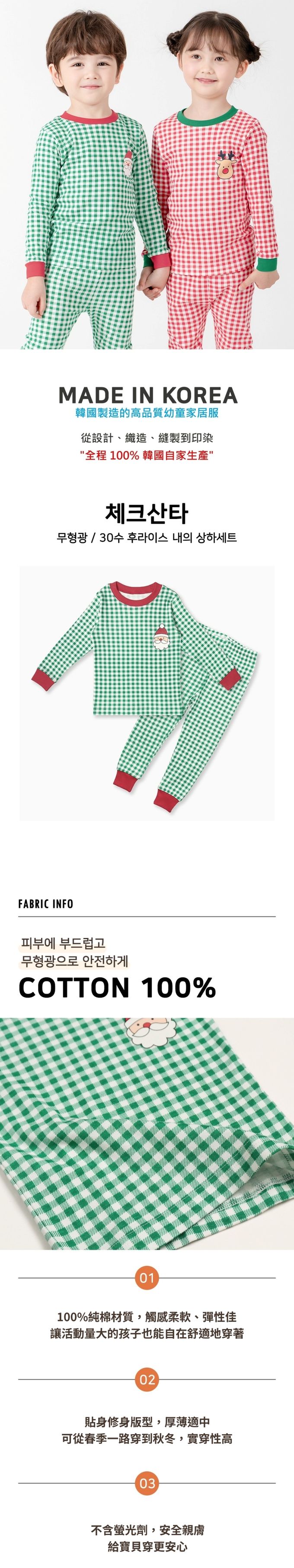 韓國 Mellisse - 韓製30支純棉柔軟長袖家居服-格紋聖誕老人-綠