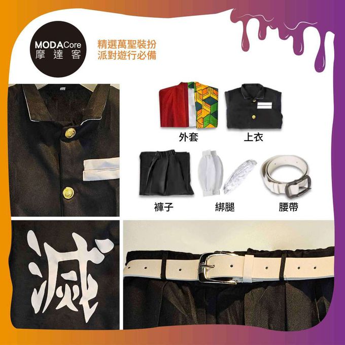 品名:★萬聖派對變裝扮★兒童鬼殺隊義勇五件組(上衣/褲子/外衣/皮帶/綁腿) 兩種尺寸可選★Cosplay