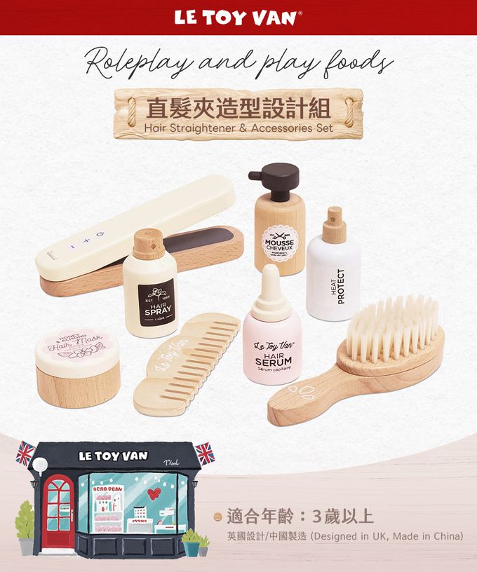。整組包含多功能直髮夾直版燙、造型髮梳、長扁梳、護髮霜、髮蠟、定型噴霧、抗熱噴霧及造型慕斯等