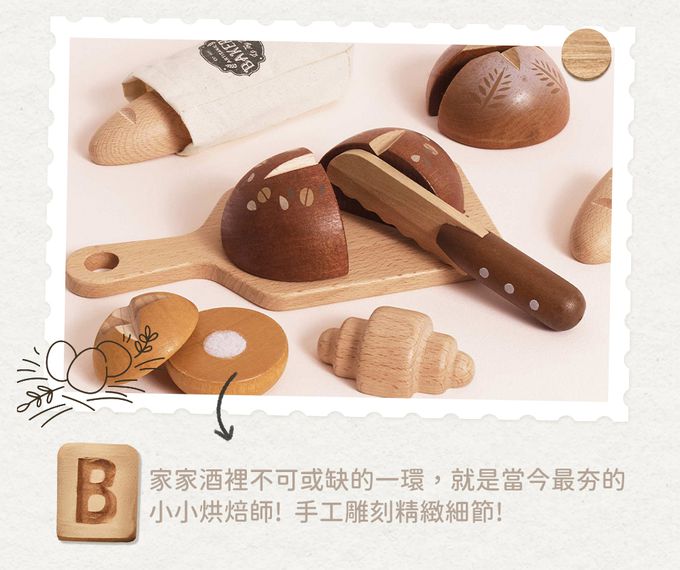 。家家酒裡不可或缺的一環,就是當今最夯的小小烘焙師! 手工雕刻精緻細節!