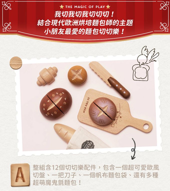 。我切我切我切切切!結合現代歐洲烘培麵包師的主題,小朋友最愛的麵包切切樂!