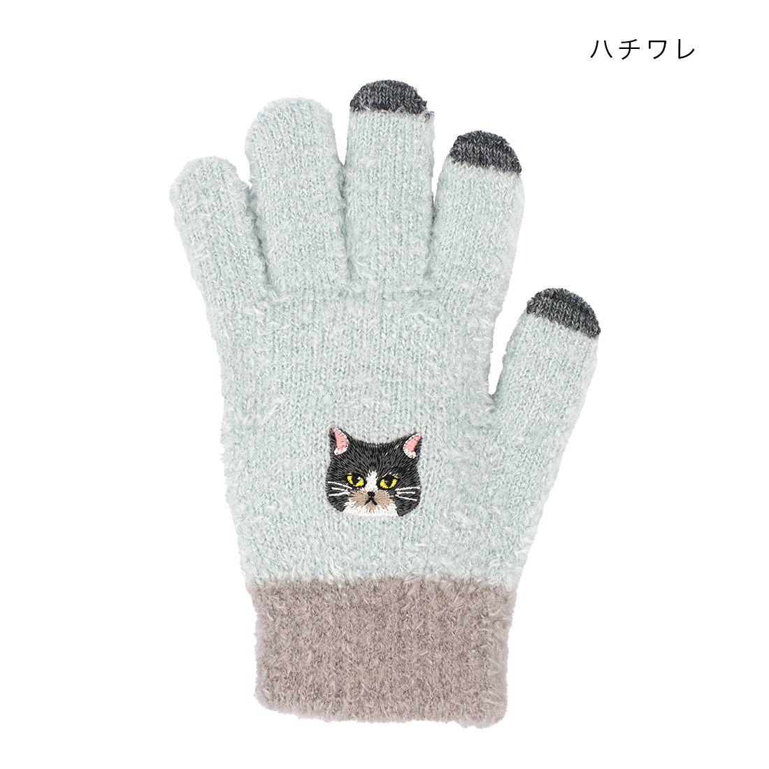 日本 TOMO - 大人可觸控短絨保暖手套-貓咪-綠米灰