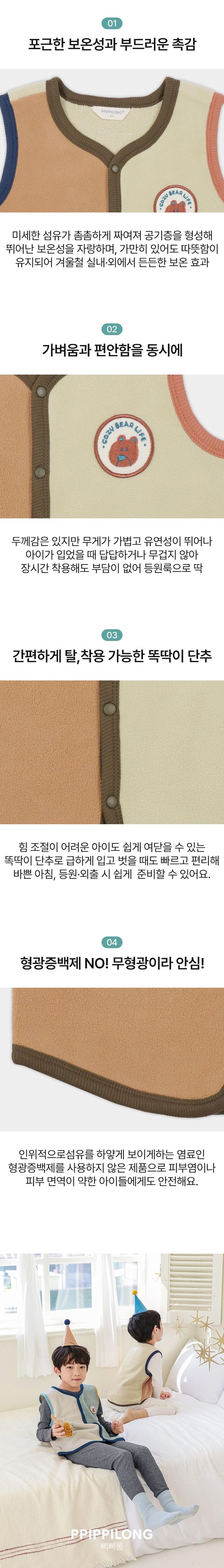 (01.) 細緻纖維緊密編織而成,形成溫暖的空氣層,具出色的保暖性與柔軟觸感。即使靜止不動也能維持溫度,讓孩子在冬季室內外都能感受持久的暖意與舒適