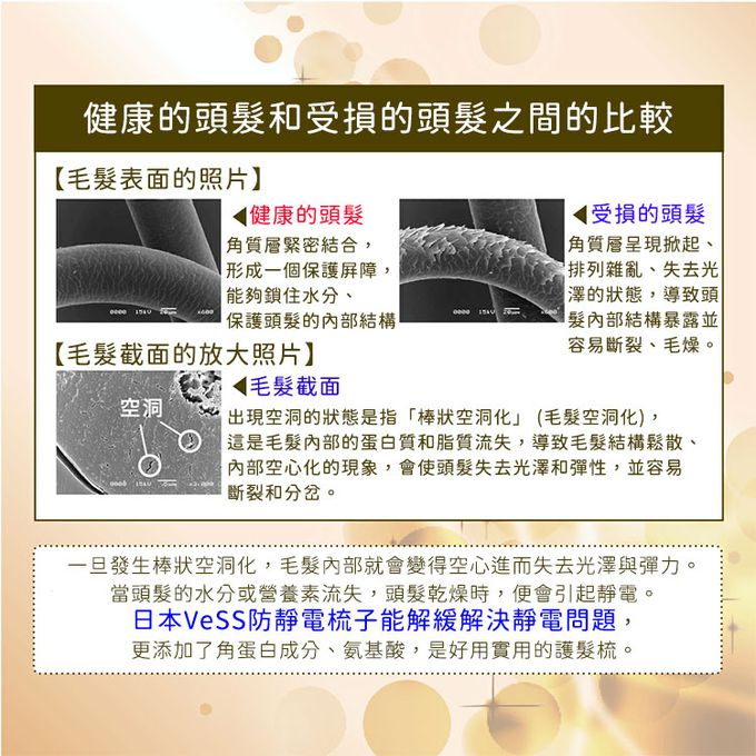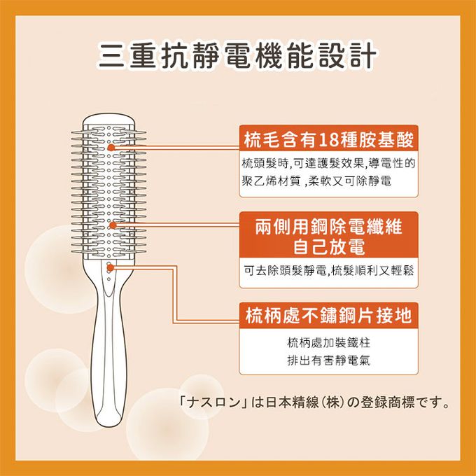 • 可去除頭髮静電,梳髮順利又輕鬆