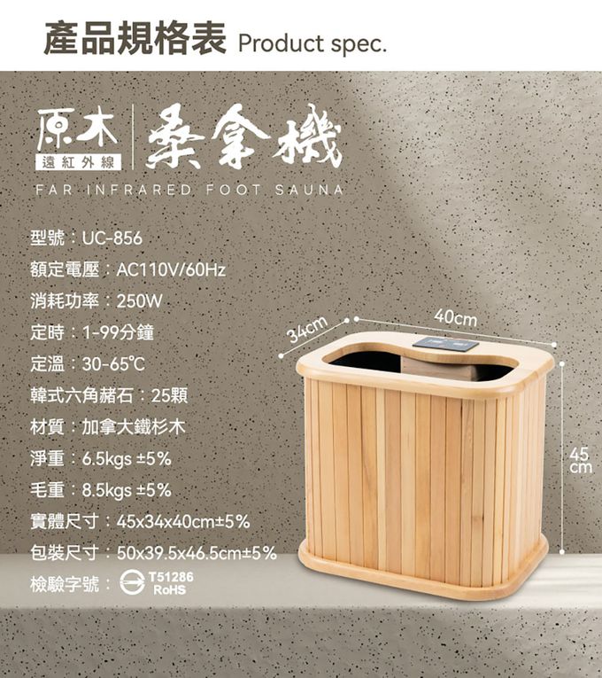 品名:遠紅外線原木桑拿機-韓式六角鍺石 輕便小型 UC-856 (小)
