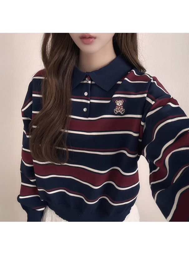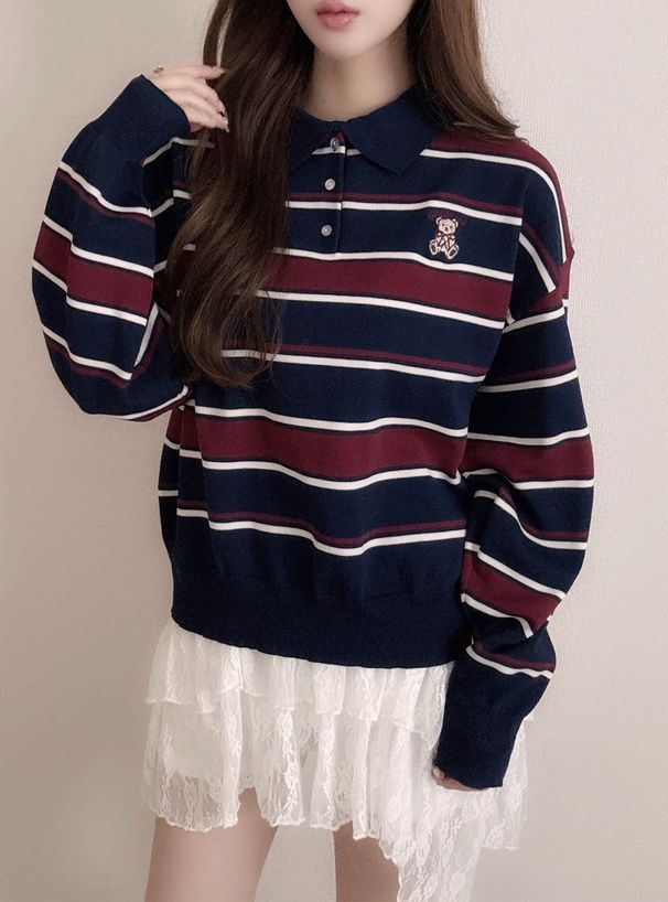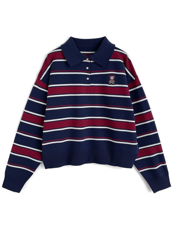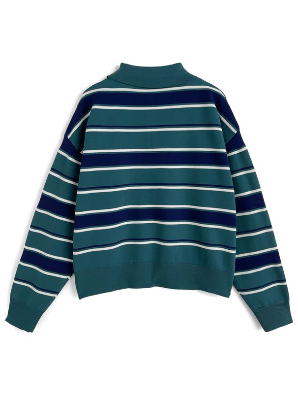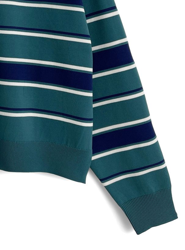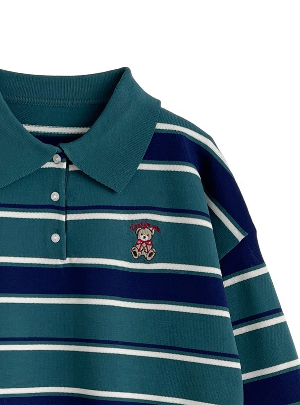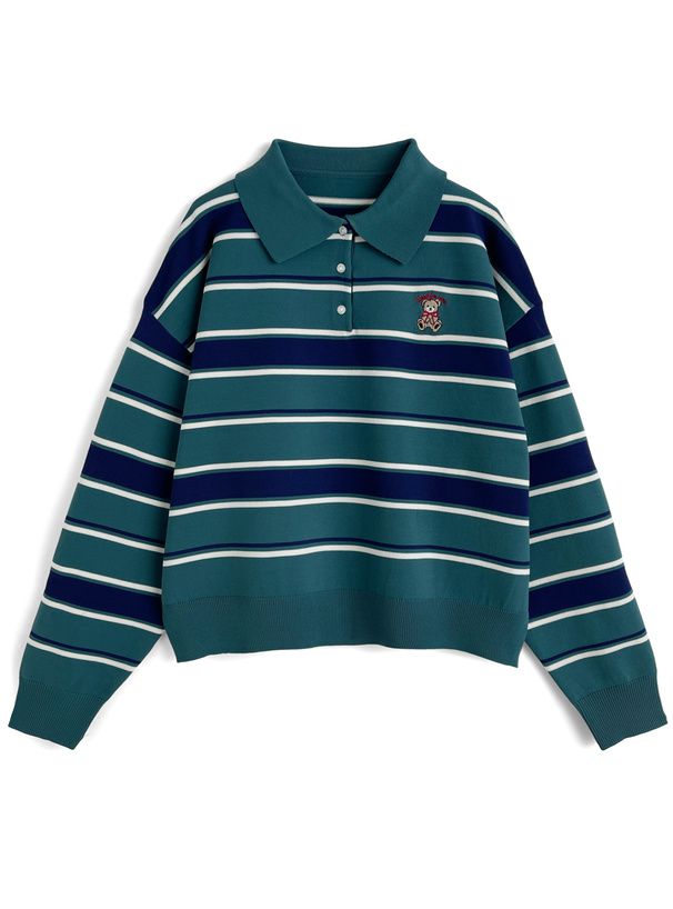 日本 GRL - 泰迪熊風格polo條紋針織上衣-藍綠系 (F)