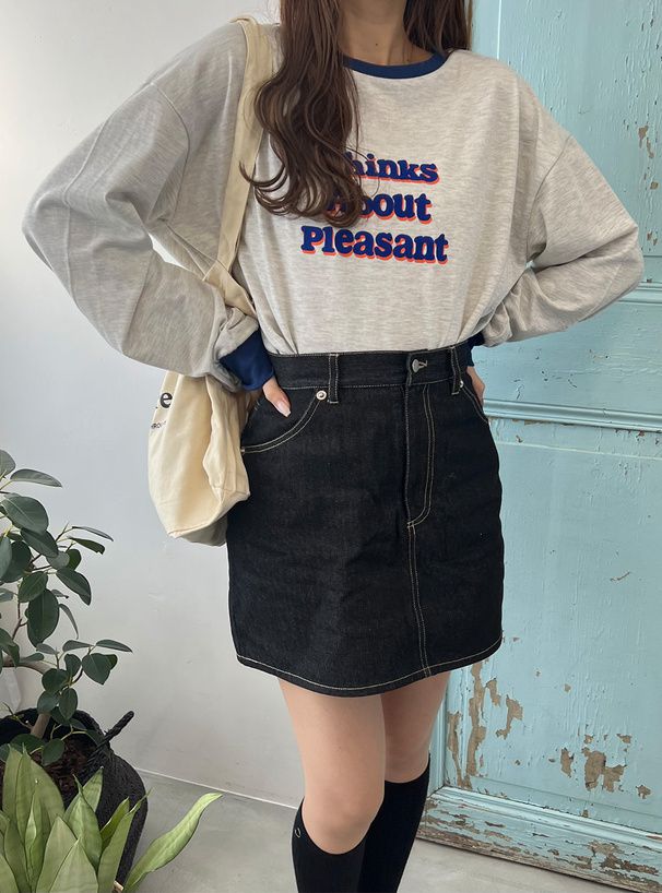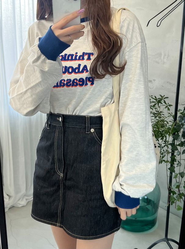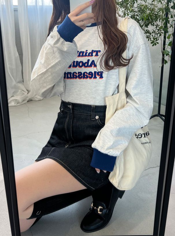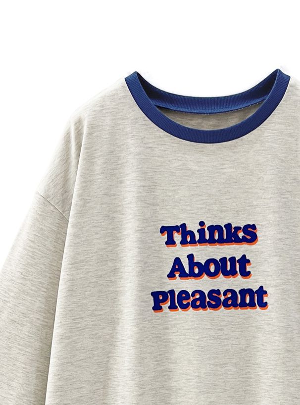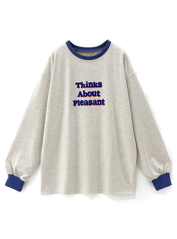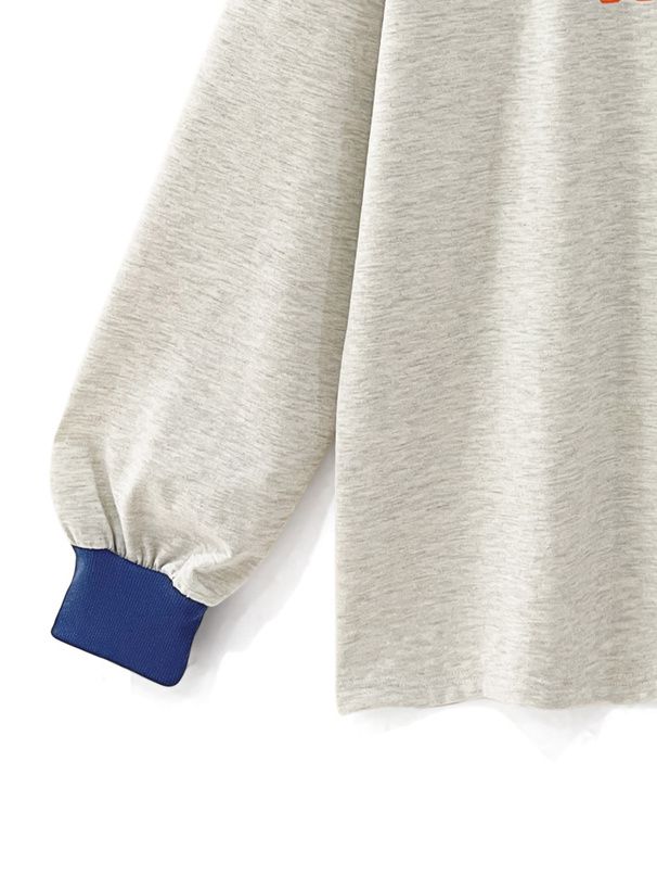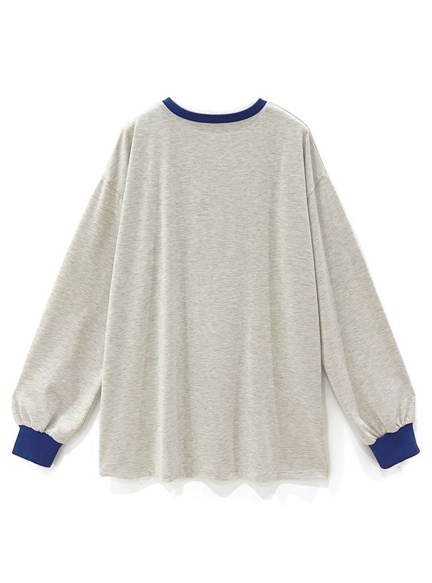 日本 GRL - 美式休閒logo撞色長袖上衣-燕麥灰 (F)