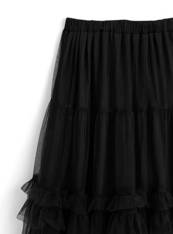 • 裙子採用輕盈的薄紗材質,打造蓬鬆感