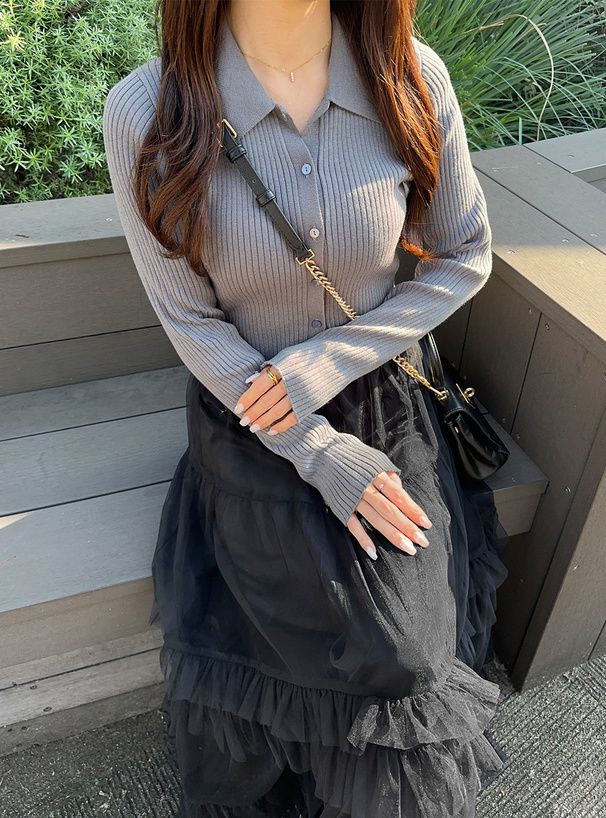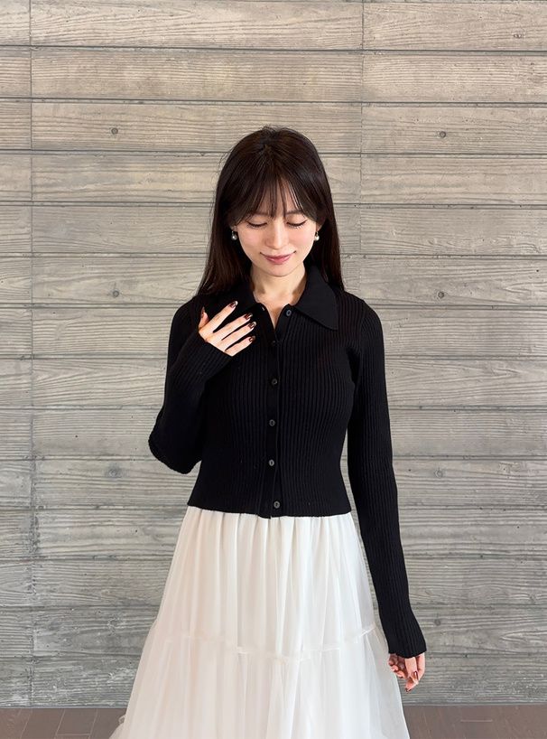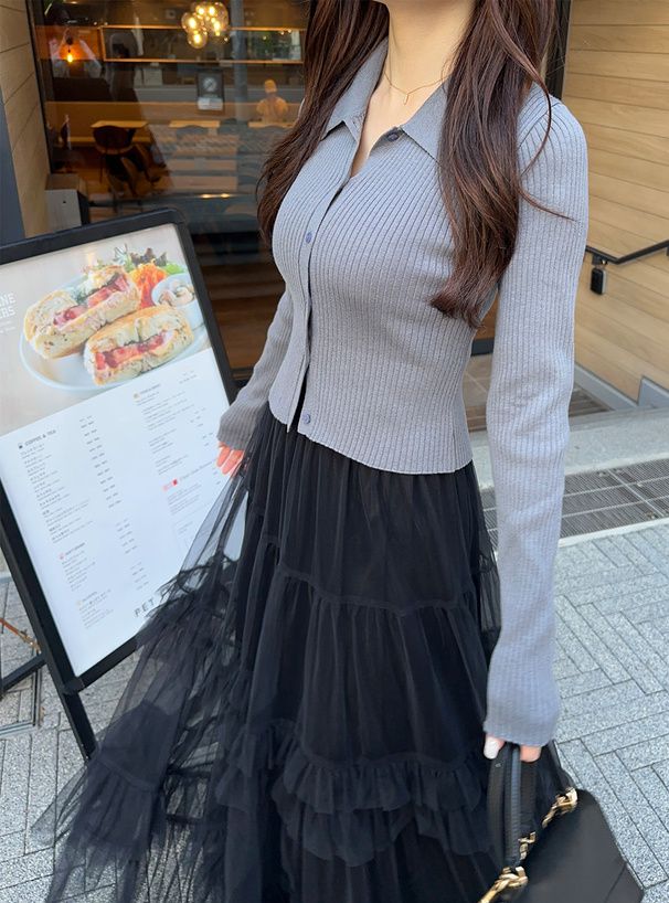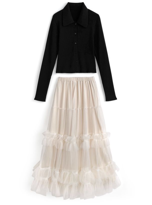 • 品名:羅紋針織開襟上衣+蓬蓬紗裙(2件式套裝)