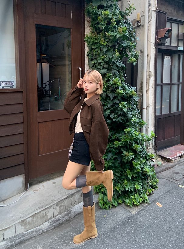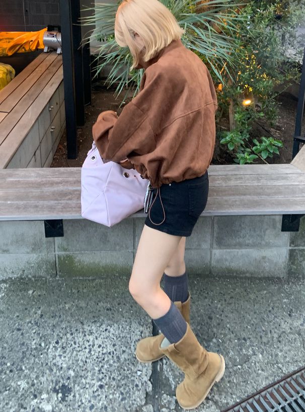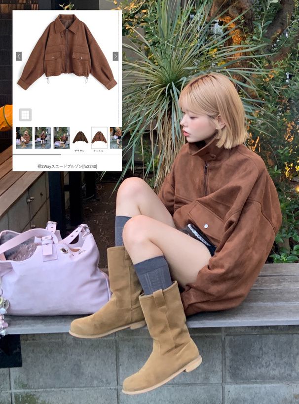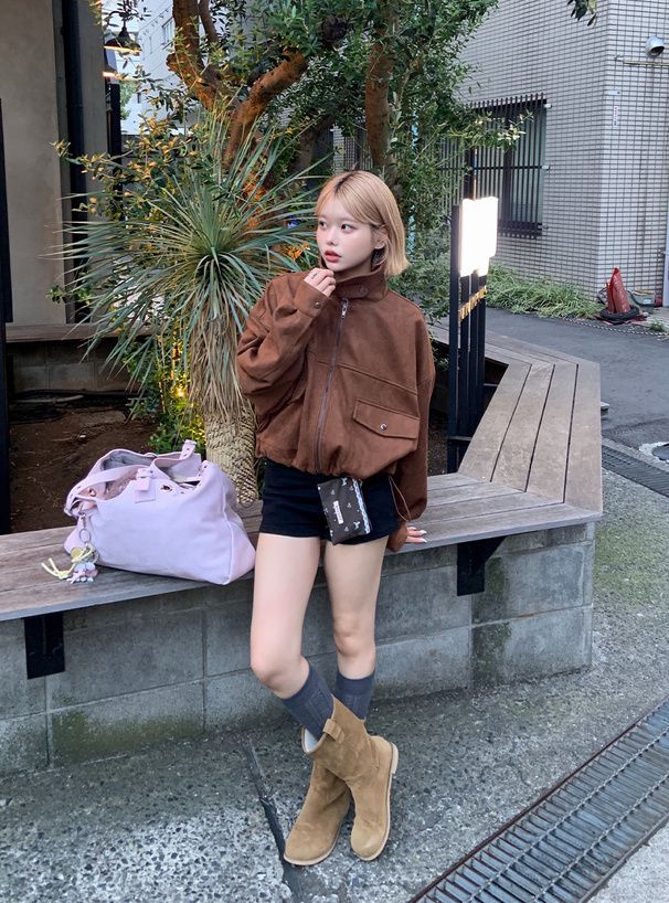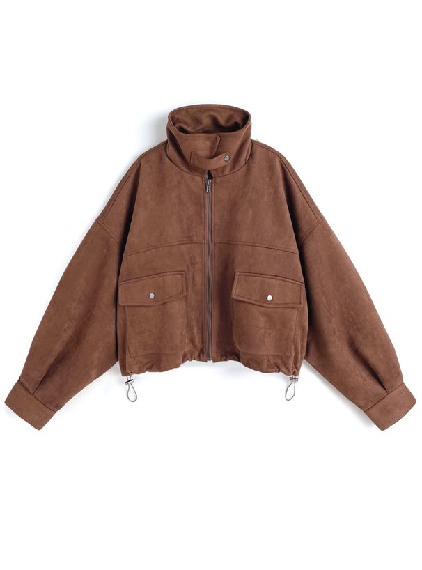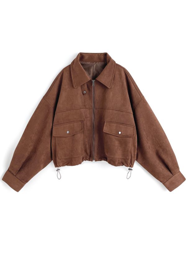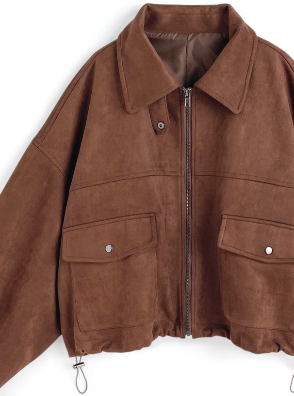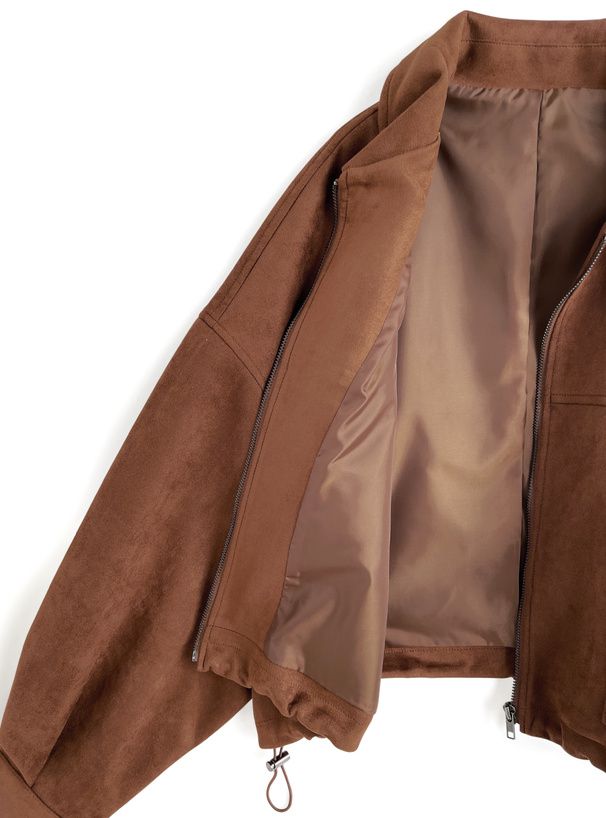 • 品名:2way立領仿麂皮騎士風抽繩外套