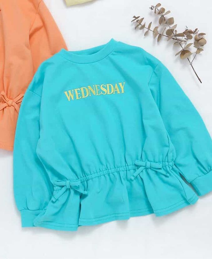 日本 apres les cours - 100%棉 可愛荷葉縮腰長袖上衣-WEDNESDAY-天藍