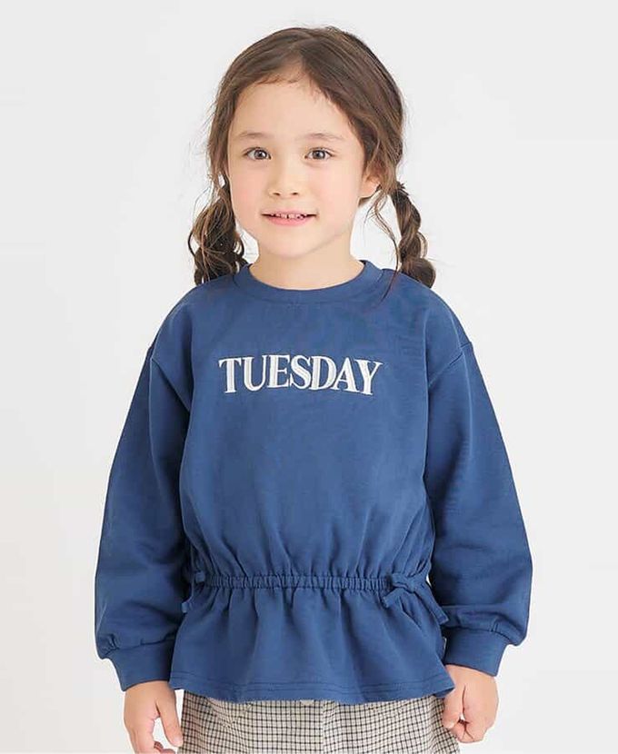 日本 apres les cours - 100%棉 可愛荷葉縮腰長袖上衣-TUESDAY-海軍藍