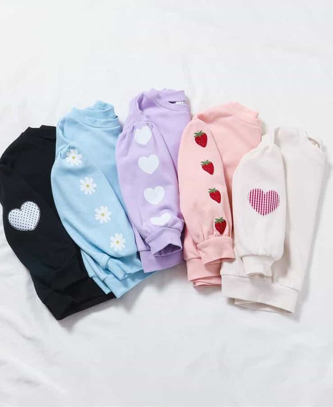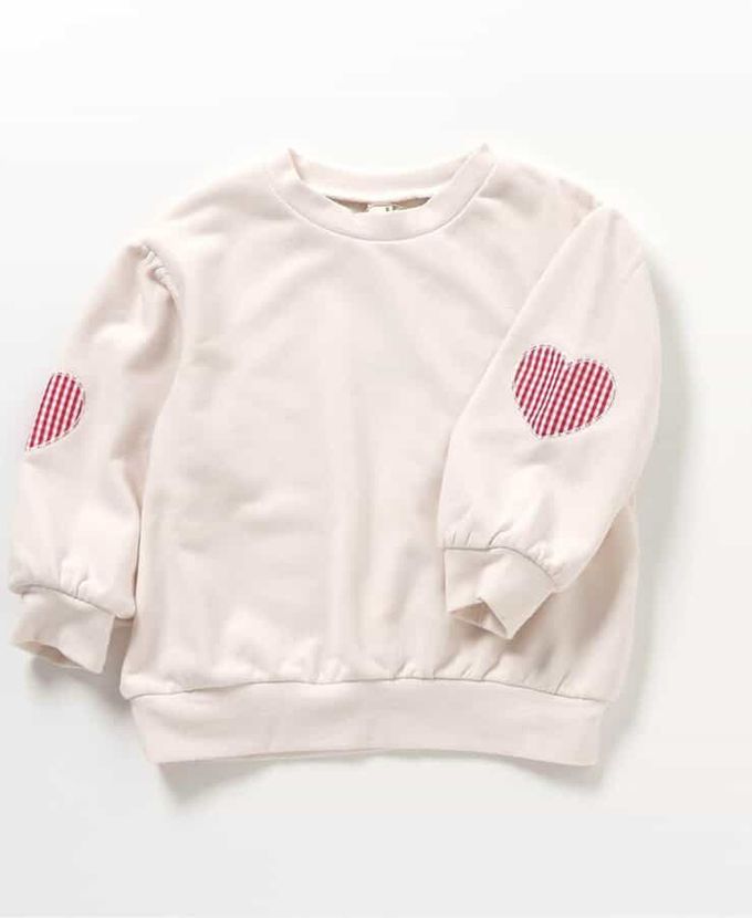 日本 apres les cours - 可愛袖子印花長袖上衣-大愛心-象牙白