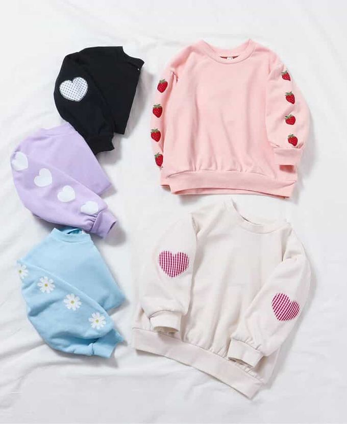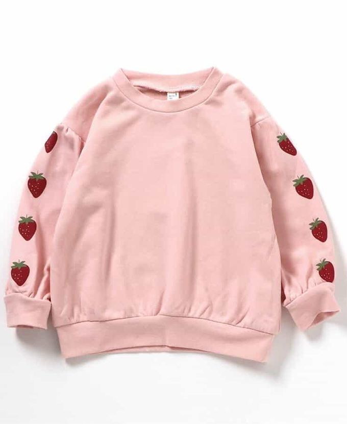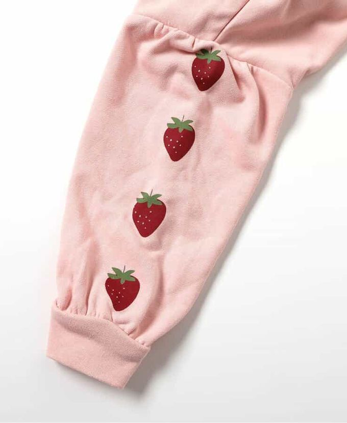 日本 apres les cours - 可愛袖子印花長袖上衣-草莓-粉紅