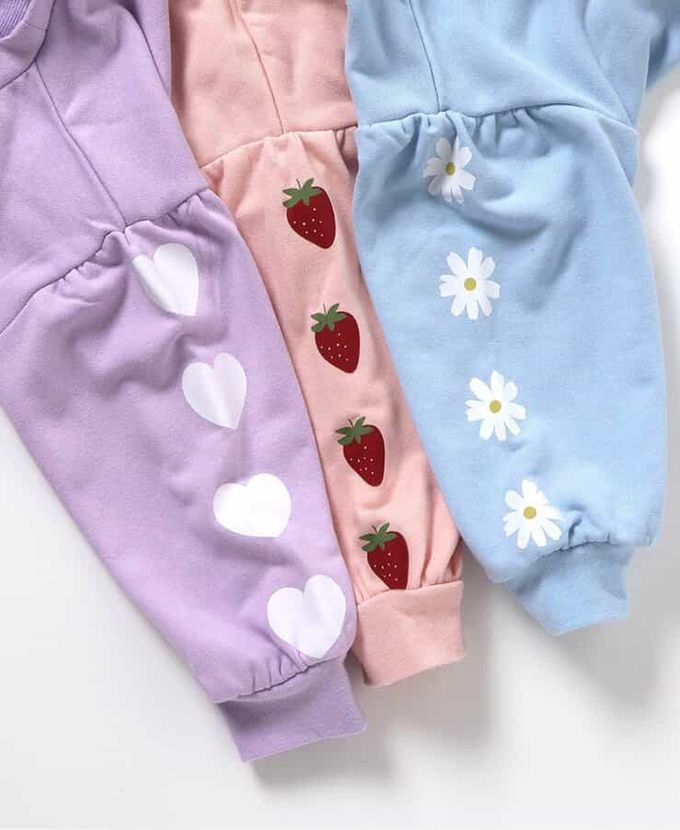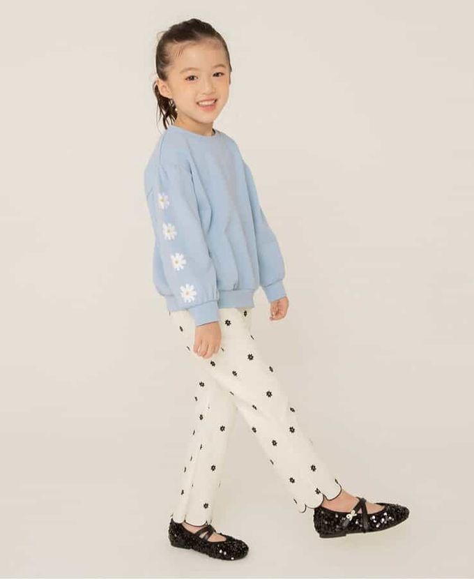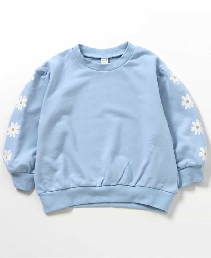 日本 apres les cours - 可愛袖子印花長袖上衣-小花-水藍