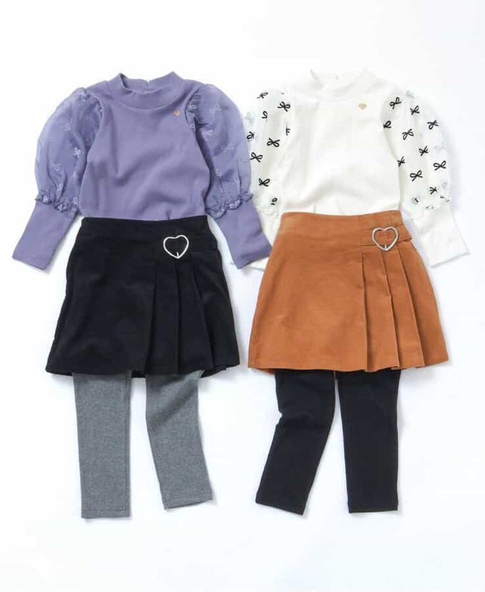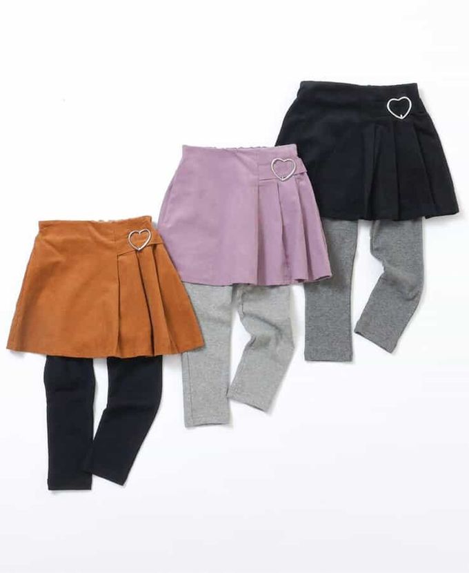 日本 apres les cours - 燈芯絨愛心釦百摺褲裙-黑