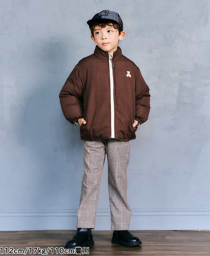 日本 apres les cours - 可機洗 雙面穿輕薄保暖科技羽絨外套-熊熊-白X棕