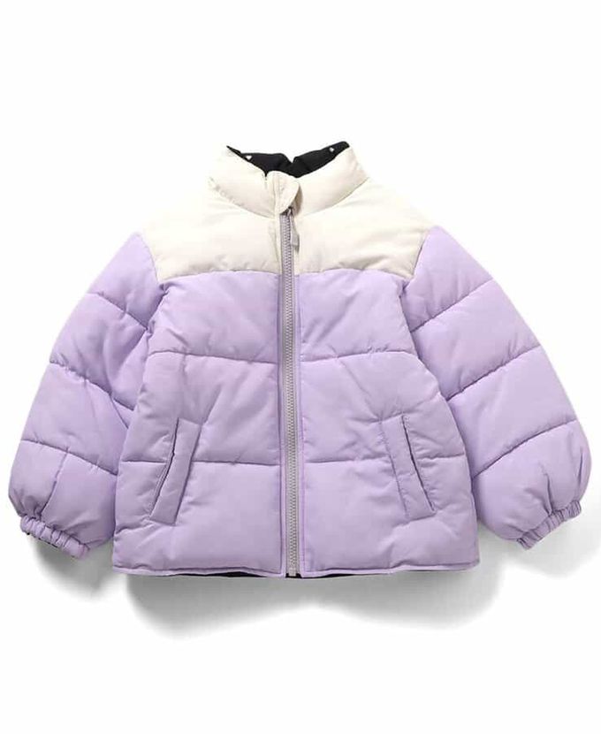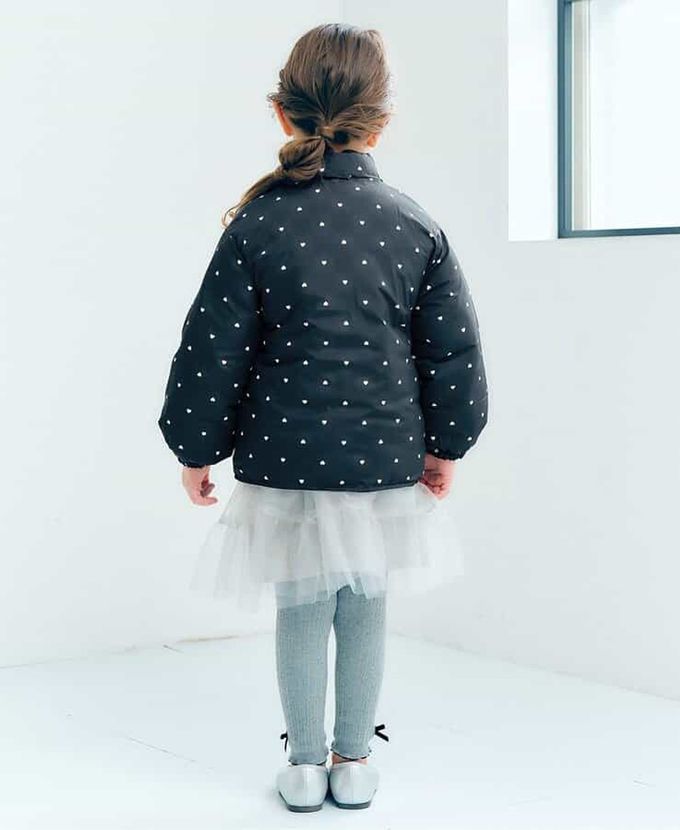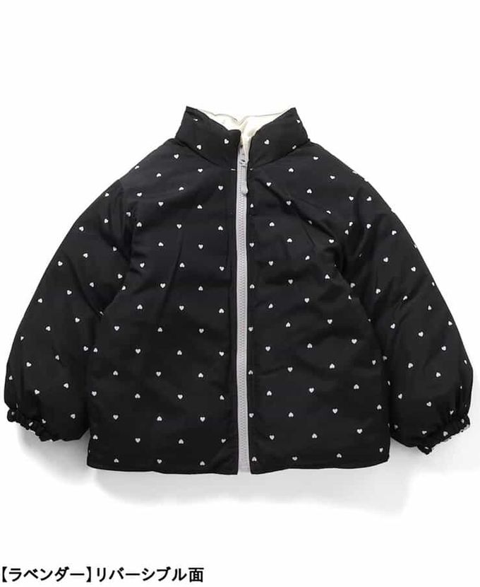 日本 apres les cours - 可機洗 雙面穿輕薄保暖科技羽絨外套-愛心-白X紫X黑