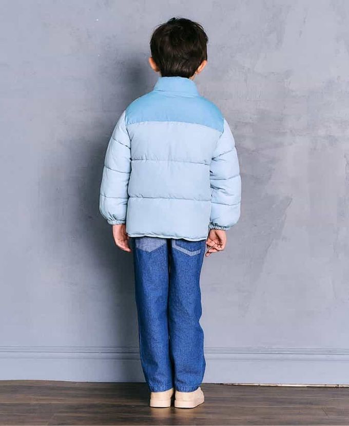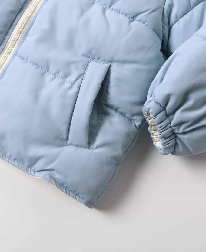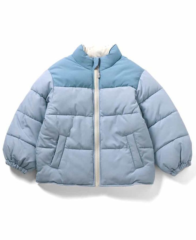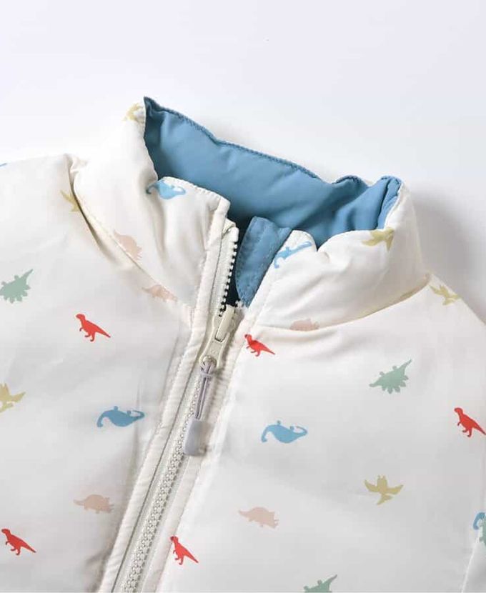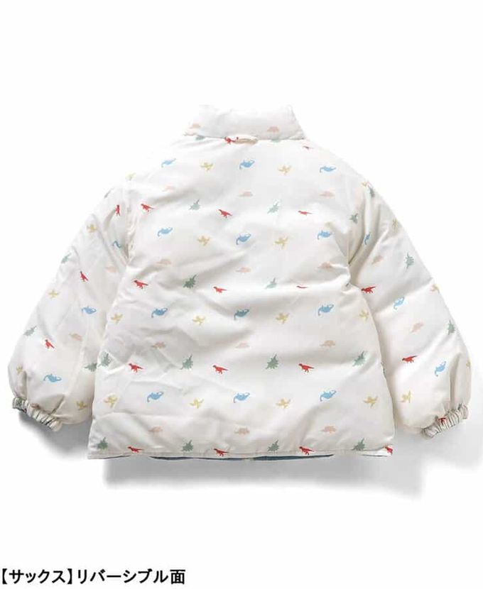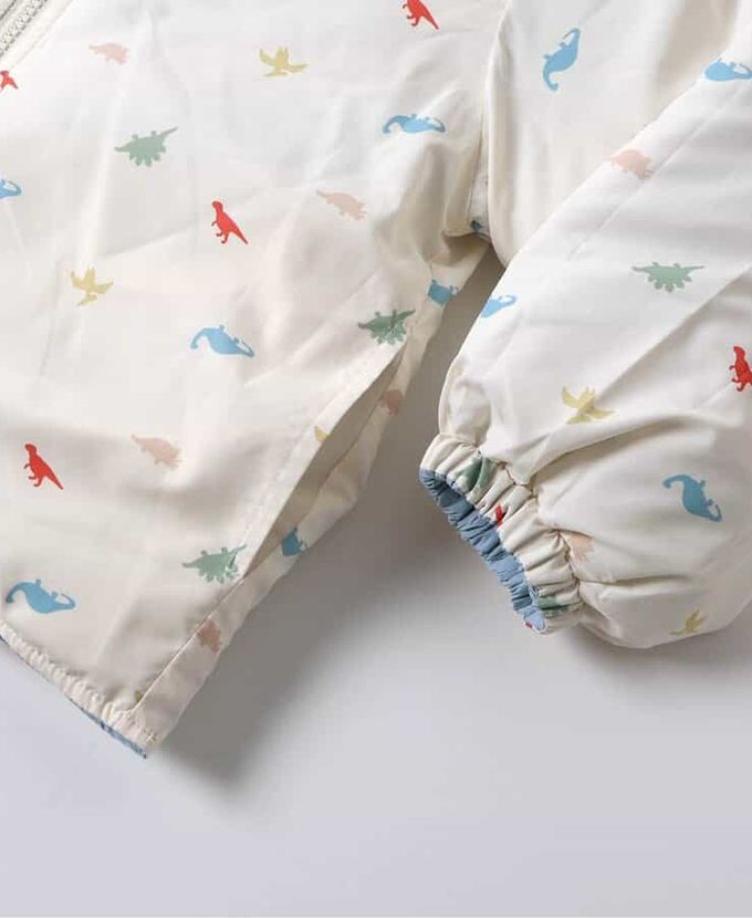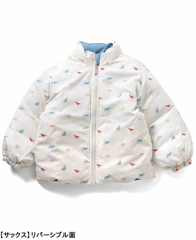 日本 apres les cours - 可機洗 雙面穿輕薄保暖科技羽絨外套-恐龍-藍X白