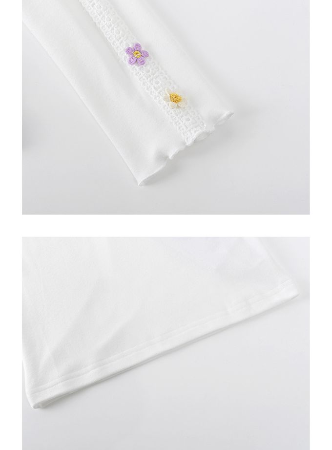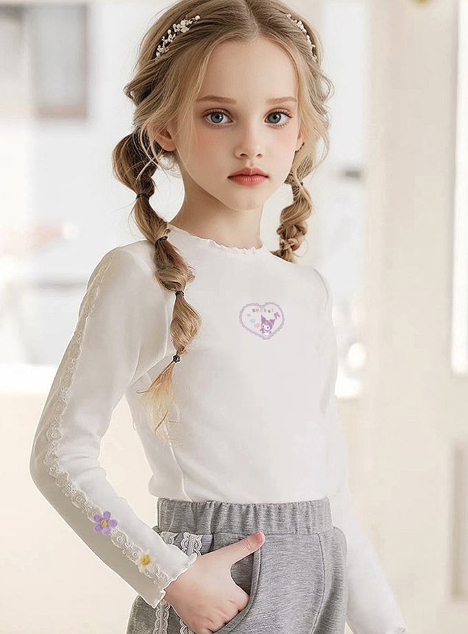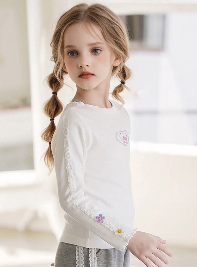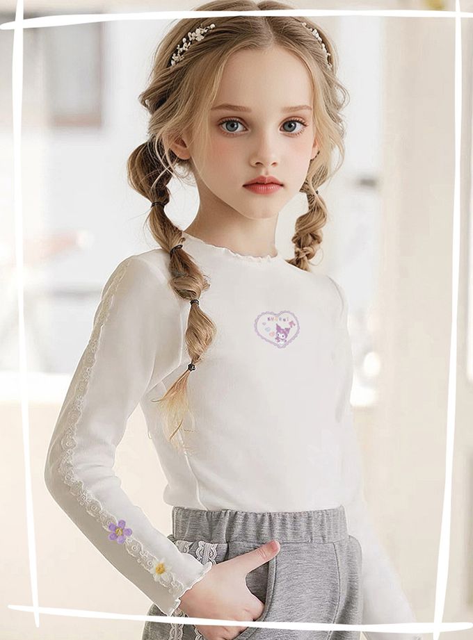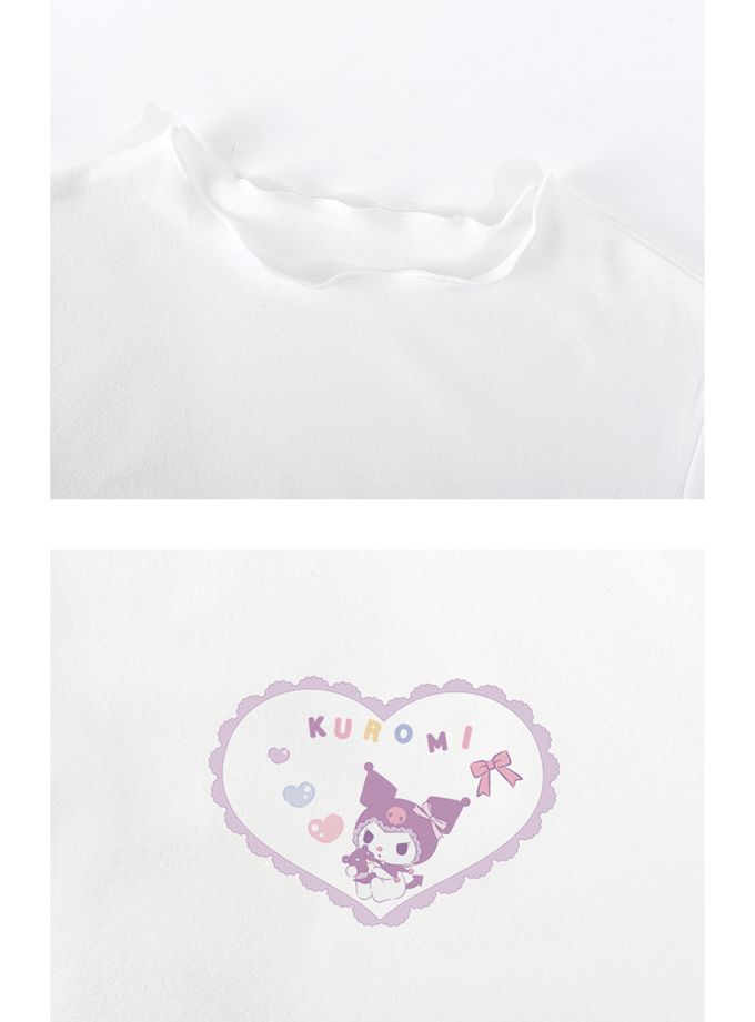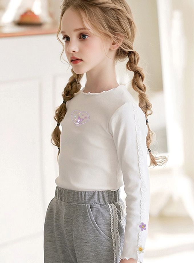 木耳邊蕾絲織帶內搭長袖上衣-卡通人物酷洛米-白色