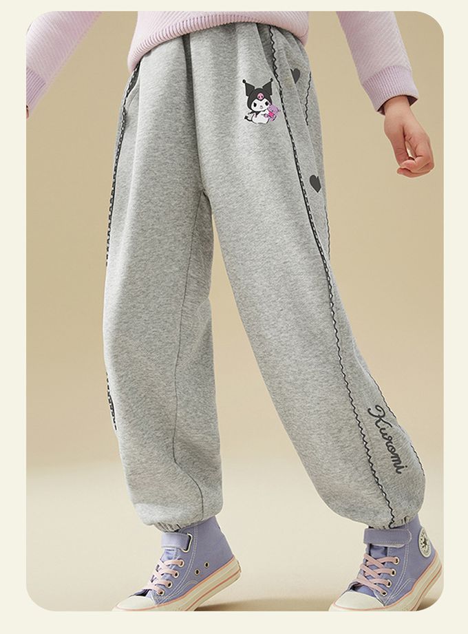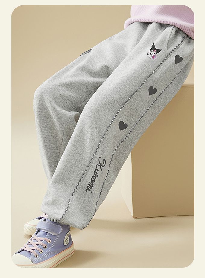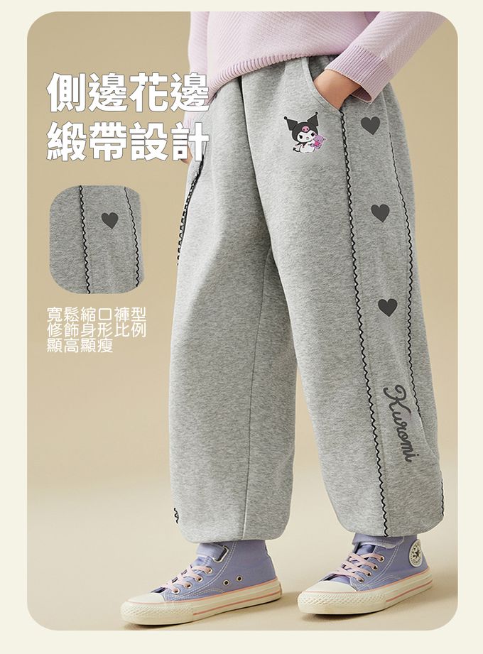 人氣卡通 - 側邊花邊織帶愛心休閒長褲-卡通人物酷洛米-灰色