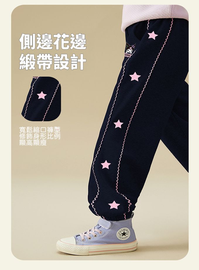側邊花邊織帶愛心休閒長褲-卡通人物酷洛米-藏青