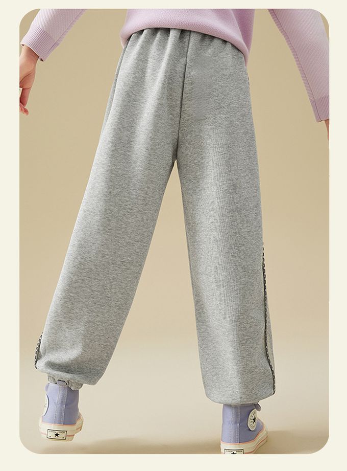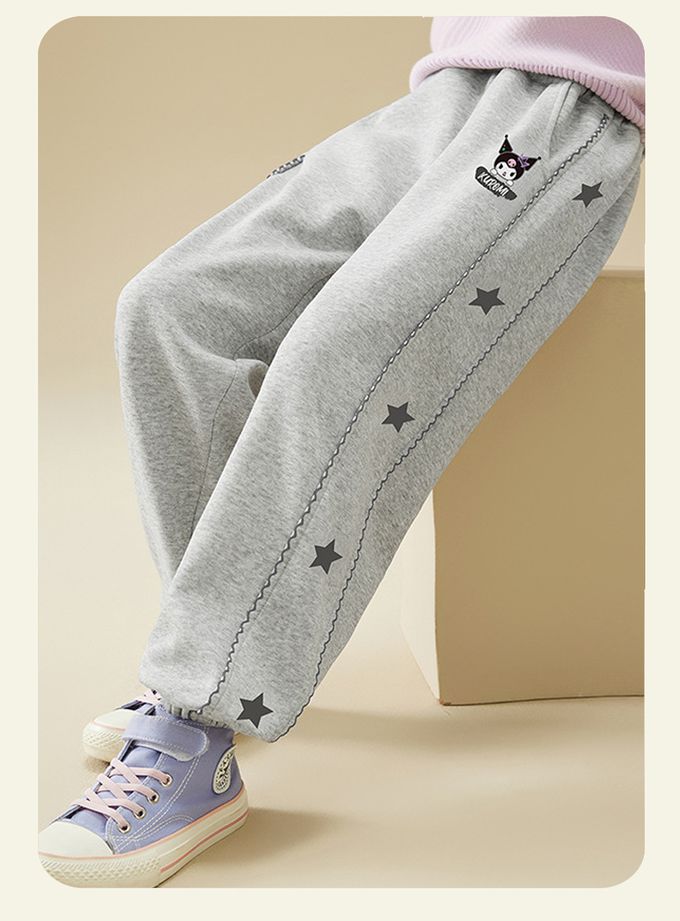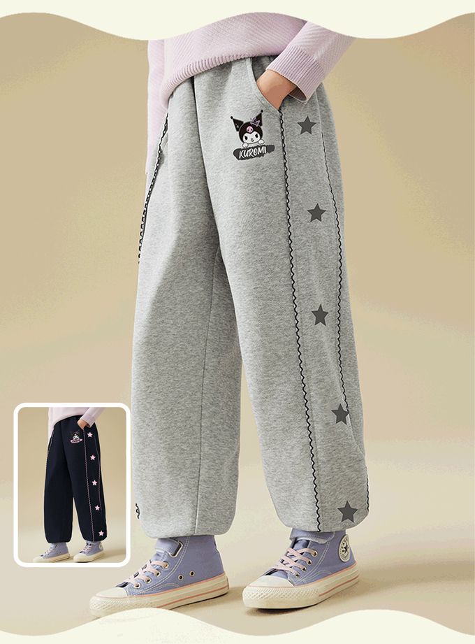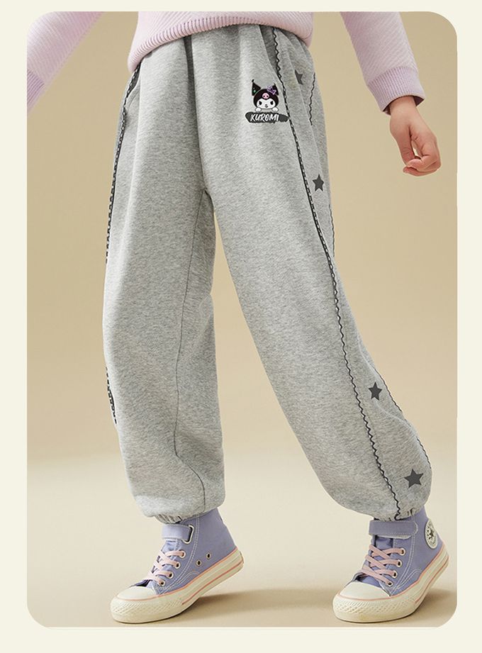 側邊花邊織帶星星休閒長褲-卡通人物酷洛米-灰色