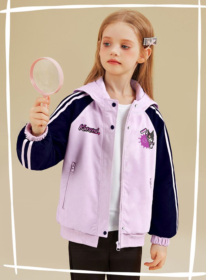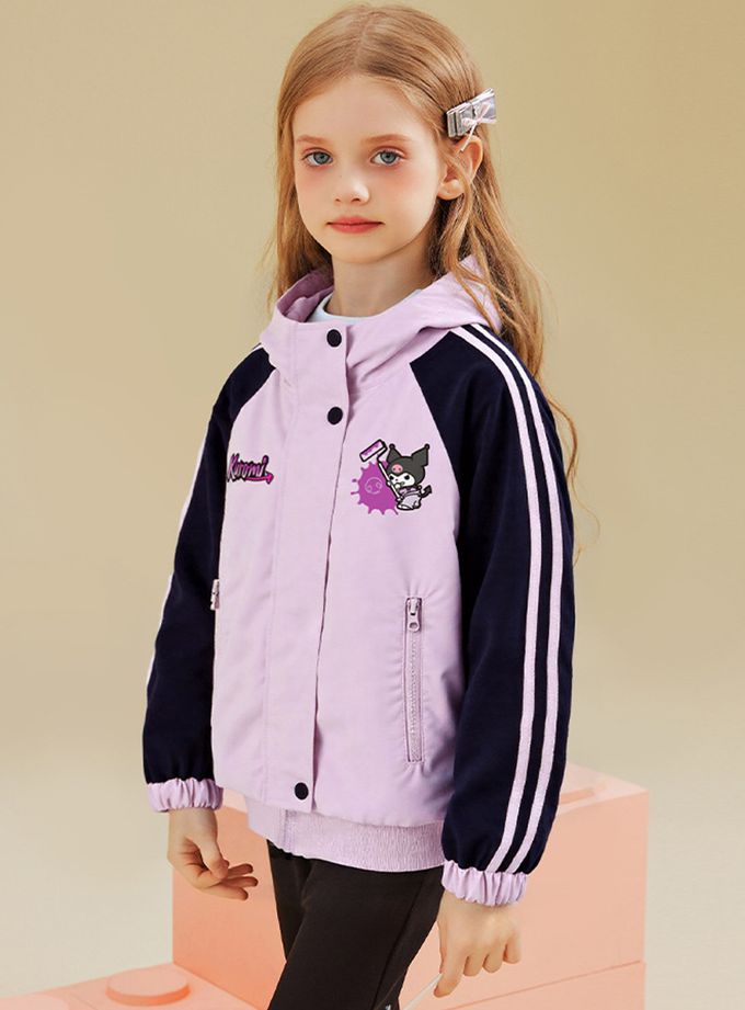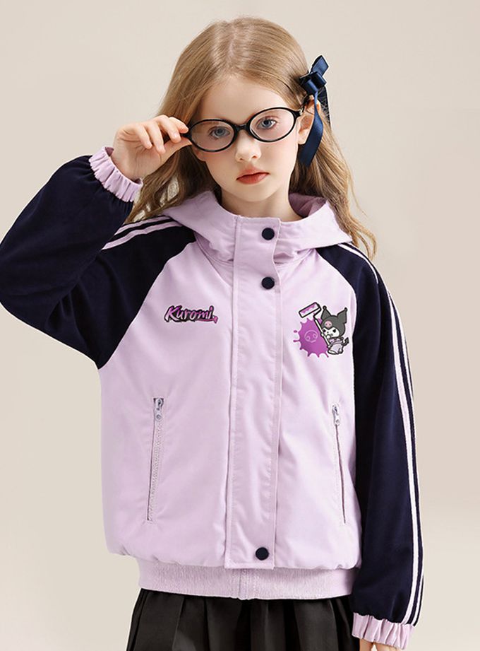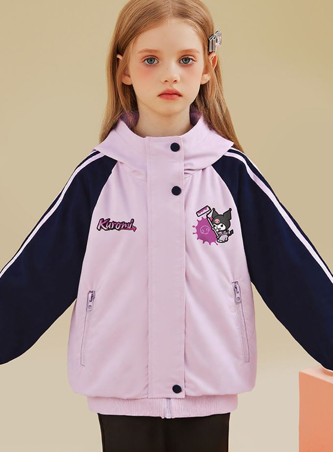 人氣卡通 - 甜酷立領撞色連帽外套-卡通人物酷洛米-粉紫