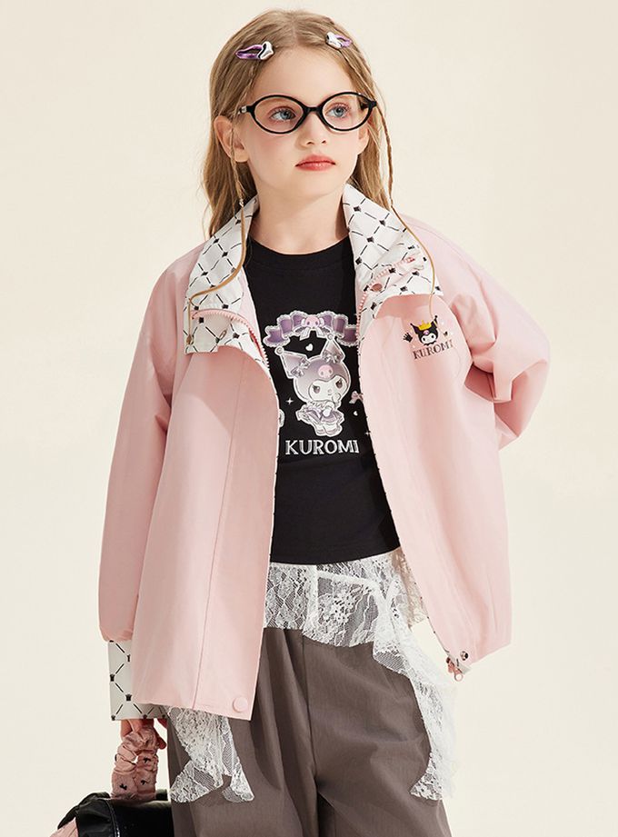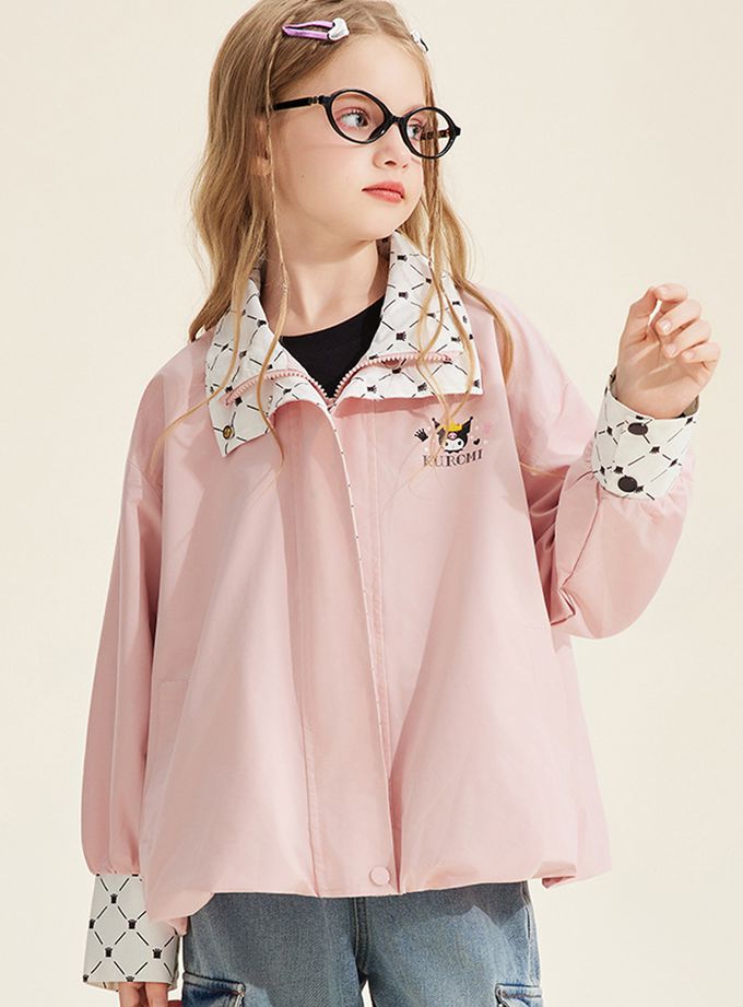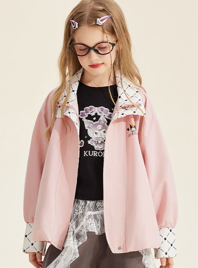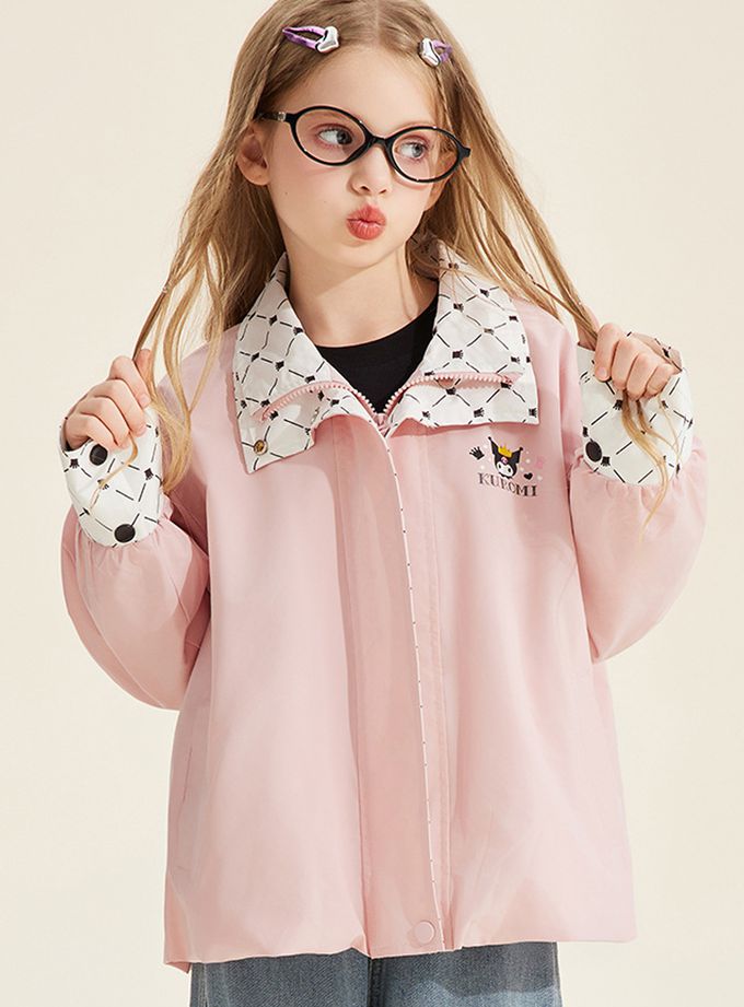 菱格拼接翻領休閒外套-卡通人物酷洛米-粉色