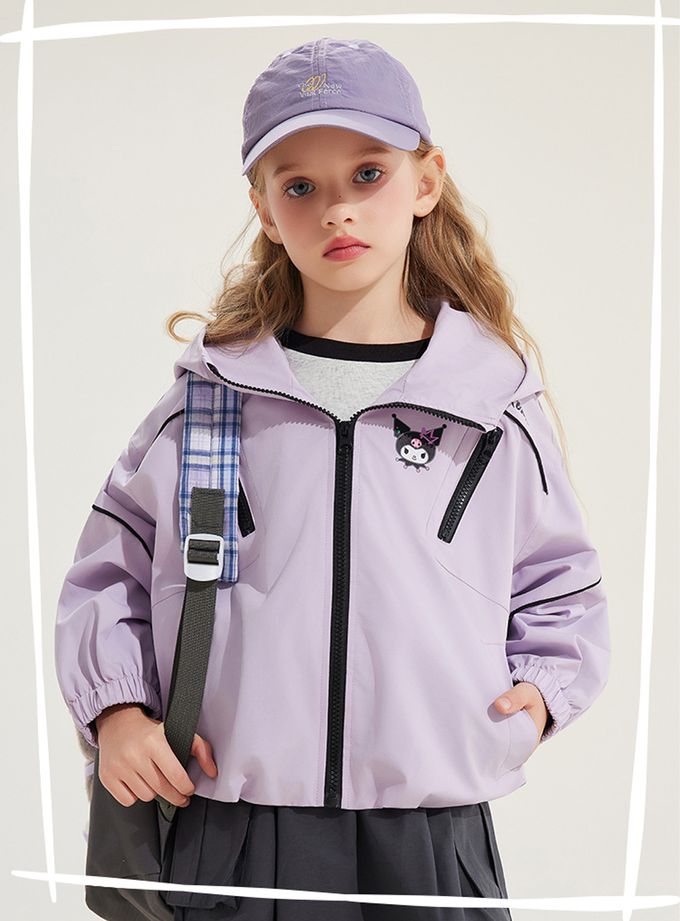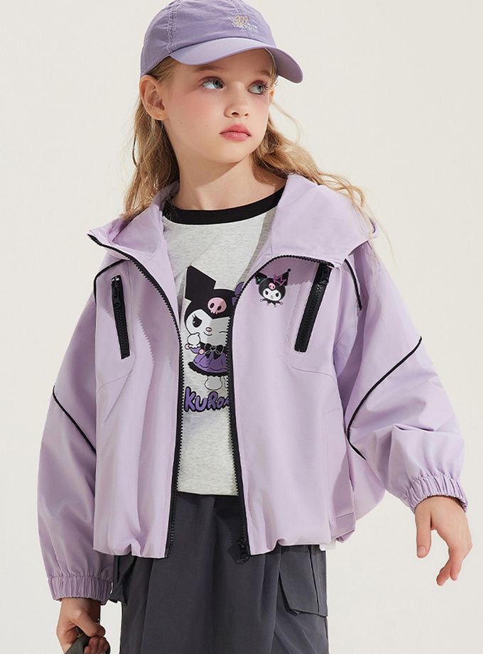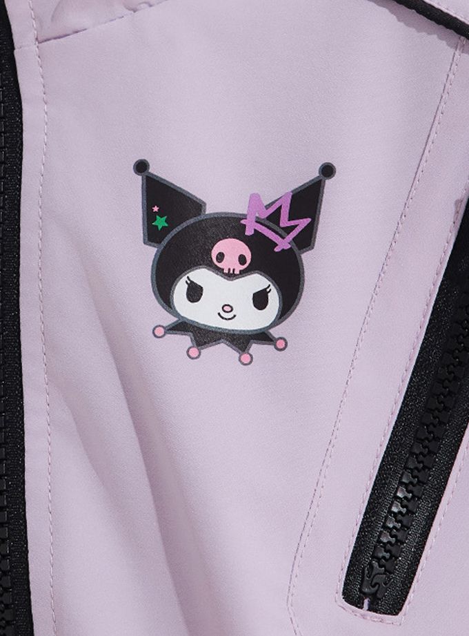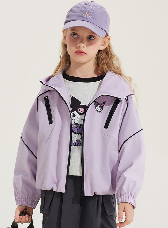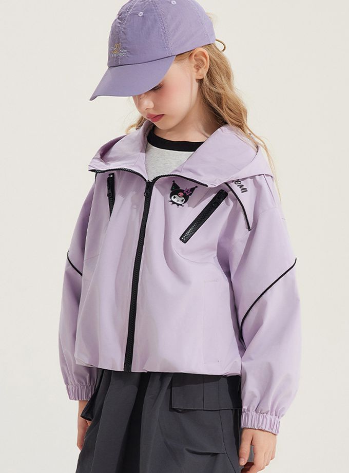 立領斜拉鍊設計連帽外套-卡通人物酷洛米-紫色